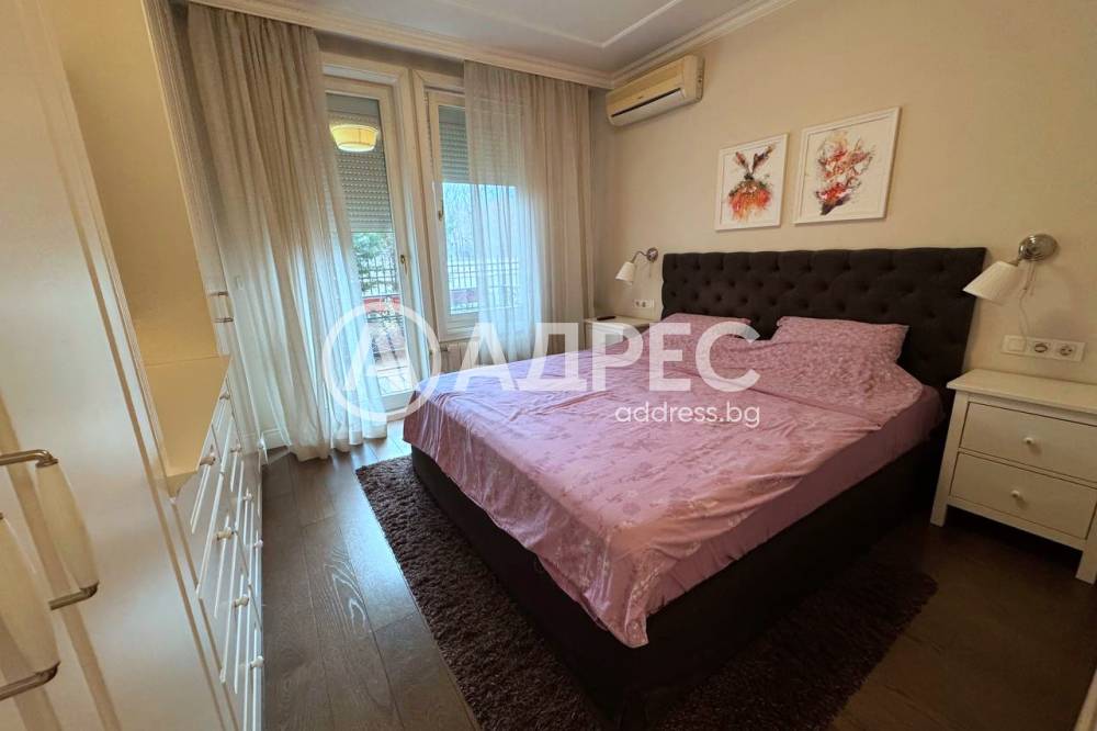 Комплексът е ограничен достъп, с 24 часова охрана, видео наблюдение. Разполага с детска площадка и изключително добре поддържани общи части. Апартаментът се предлага напълно обзаведен с чисто нови мебели и оборудване от най-висок клас. Разпределение: входно антре, хол с кухненски бокс, спалня, баня с тоалетна, мокро помещение, двор. Към имота може да бъде наето подземно паркомясто за 100 евро на месец.