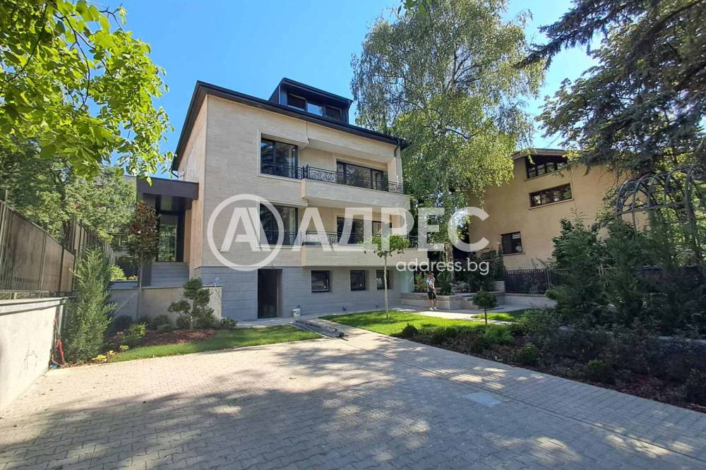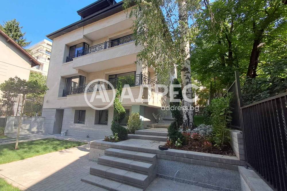 Изцяло реиновирана луксозна къща на 3 етажа със паркинг за 4 коли и двор 800кв.м направен с прекрасни градини .Къщата се състои от партер, в който има фитнес, сауна и парна баня на площ от 80 кв.м. На ет.1 с площ от 100кв.м са разположени 2 непреходни спални, дневна с кухненски бокс и тераса пред тях,баня с тоалетна и отделна тоалетна. На ет.2 на същата площ от 100кв.м има същите помещения на ет.3 с площ от 80 кв.м е раположена просторна дневна с кухненски бокс и 1 голяма спалня. 3те етажа са свързани със стълбище. Къщата е облицована с мрамор, стълбището е с мрамор и парапети с ковано желязо. Отдава се под наем изцяло обзаведена луксозно ц нови скъпи мебели , вградени кухни с ел. уреди правени по поръчка. Отоплението е на ТЕЦ и климатици сплит система. Има огромни градини както пред къщата ,така и зад нея. Обиколена е от луксозна ограда напревена с черен камък , от която няма видимост към къщата. Къщата е изцяло обновена. Всичко в нея е изцяло ново.Инсталации, стени, фасада, стълбища, бани, покрив, дограми. Завършена е със скъпи материали. Отдава се под наем дългосрочно за посолстово или за живеене.
