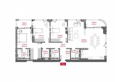 Четиристаен апартамент с отлично разпределение, три спални и впечатляващи гледки към Витоша. С площ от 181.95 кв.м / 158.22 кв.м с изложение Запад-Север.