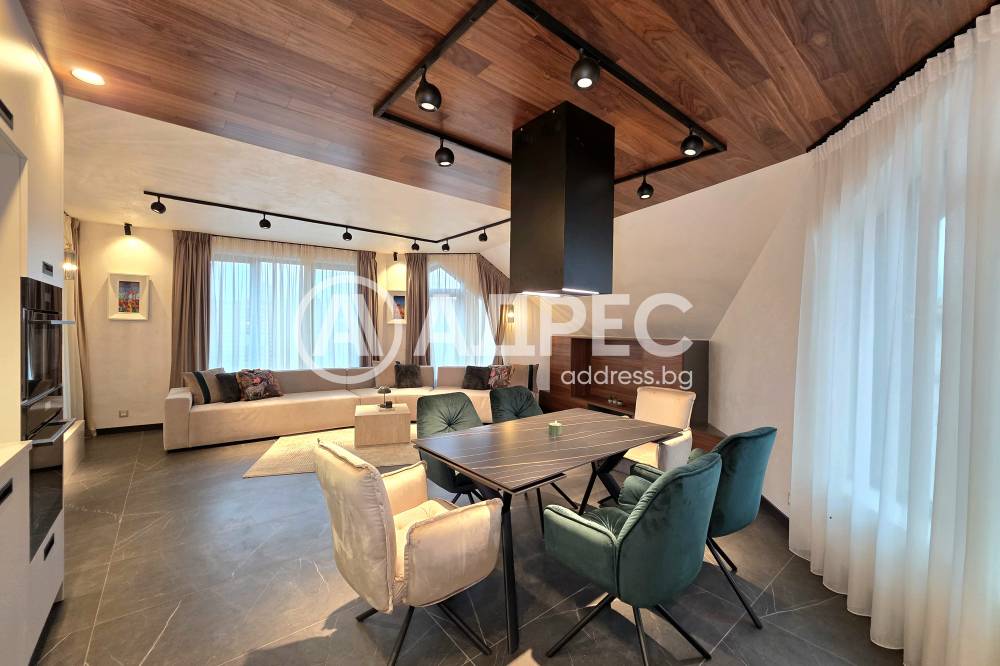 Имотът с разгърната площ от 159 кв.м. се отличава с изискан стил на обзавеждане и енергийно ефективно оборудване в гаранция. Жилището е самостоятелно на етажа, непреходно, интелигентно проектирано и изпълнено. Притежава голяма дневна, включваща зона за почивка и релакс, трапезарна и кухненска част, две хубави спални с обширно място за съхранение, два балкона с достъп от стаите и хола, две луксозни бани с тоалетна и коридор свързващ всички помещения.