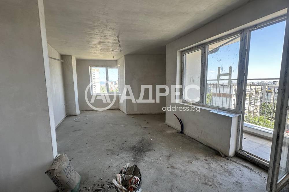 Тристаен апартамент със застроена площ от 76,5 кв.м., състоящ се от входно антре, дневна с кухненски бокс, две спални, баня с тоалетна, отделна тоалетна и балкон.