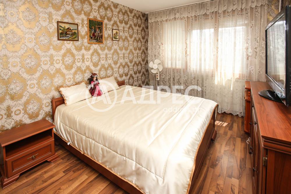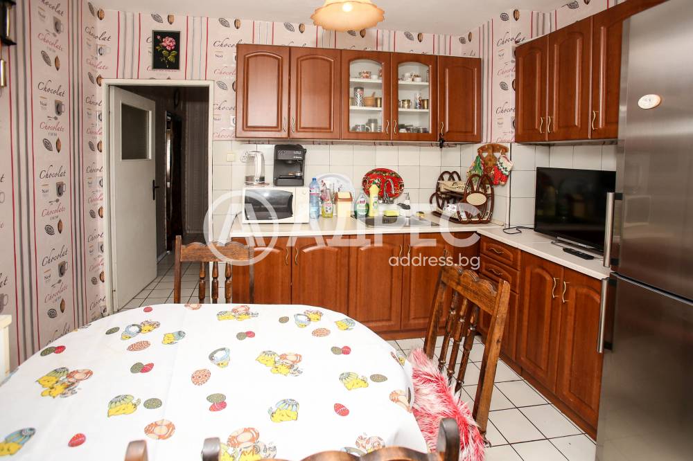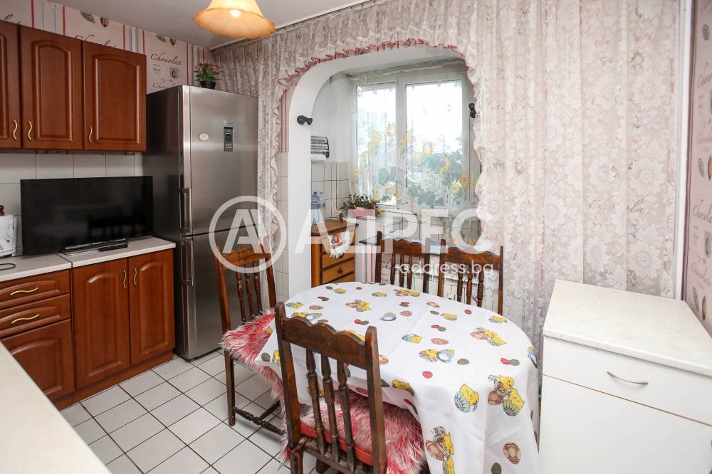 Напълно обзаведен тристаен апартамент. Състои се от: хол с излаз на южна тераса, спалня, още една непреходна стая, отделна кухня с усвоен балкон, мокро помещение, баня , тоалетна и дрешник. Апартаментът е в много добро състояние. Външни ролетни щори на двете спални, климатик в едната, сменени дограми в стаите и ламинат в спалните, а в хола теракотни плочки. Контролиран достъп. Към имота има прилежащо избено помещение.
