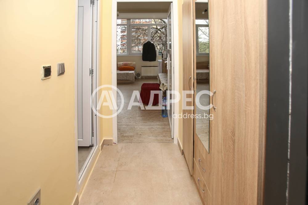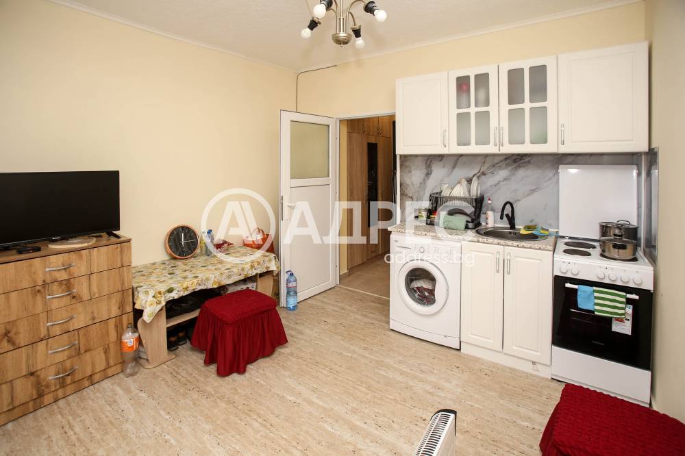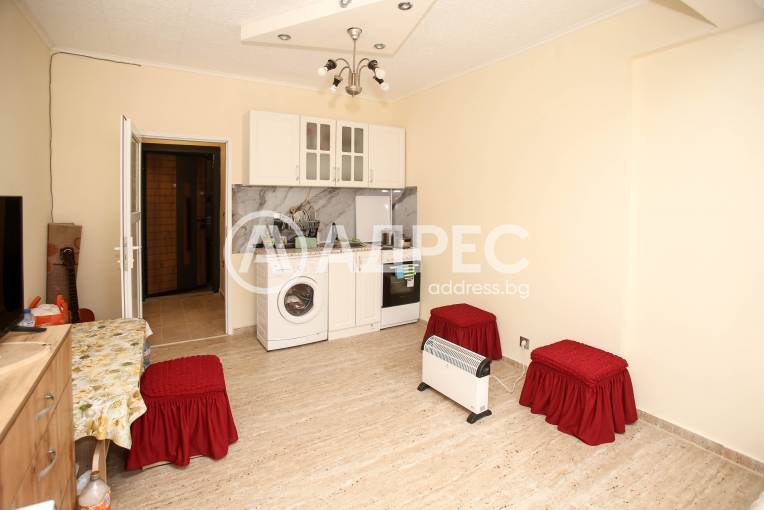 Едностаен апартамент с жилищна площ от 24 кв.м.. Състои се от дневна с кухненски бокс, коридор и баня с тоалетна. Настилките в жилището са: гранитогрес в хола, гранитогрес в коридора, фаянс и теракота в банята и тоалетната.Стени на латекс. Нова ПВЦ дограма и външна топлоизолация. Метална входна врата. Слънчев и топъл апартамент!Апартамента е след ремонт, напълно обзаведен. Изложението е източно. Тец е спрян, но има топла вода. Няма асансьор.