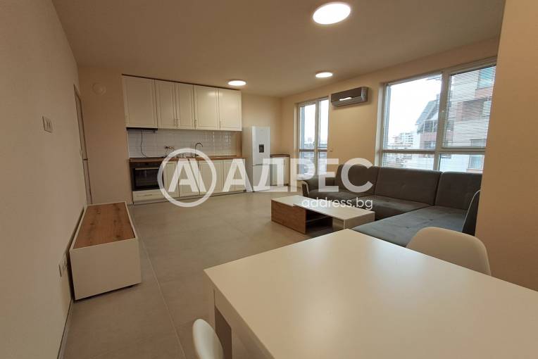 С акт 16 ! Завършен и обзаведен апартамент. Жилището се намира в луксозна сграда с магазин Спот Депо, до спирката на метрото,с/у Била и Технополис. Жилището е 83кв.м с общи части 73кв. м застроена площ с прибавените към апартамента още 6 кв.м чиста площ на ет.7/8 с изложение -запад на дневната и изток на спалнята. Помещенията са със следните чисти квадратури- спалнята е 17кв.м и дневната с бокса - 30.50 кв.,коридор 4 кв.м,тераса към дневната 4кв.м, баня с тоалетна и отделно мокро помещение. Жилището е много светло със френски прозорци на дневната и спалнята. Апартамента се продава завършен качествено и обзаведен с нови мебели и ел.уреди. В хола има разтегателен диван, ниска масичка, шкаф за телевизор, трапезна маса с 4 стола, вградена кухня със съдомиална, фурна, котлони,хладилник. Отоплението е на климатици сплит система, които са монтирани- 1 в хола,1 в спалнята. В спалнята има спалня комплекс с голямо легло 180х200 ,2 нощни шкафчета, скрин и гардероб с огледало и плъзгащи се врати. Монтирани са алуминиеви щори на всички прозорци.Банята и мокрото са завършени и оборудвани с мивка с батерия и шкаф, горен шкаф, структура с тоалетна чиния, душ параван с закалено стъкло и душ батерия. Има монтирани ключове и контакти в целия апартамент , осветителни тела, вътрешни интериорни врати. В мокрото има пералня със сушилна Wirlpool,бойлер и стелажи.В апартамента може да се живее. Има монтирани електромери ,издадени партиди за ток и е с акт 16.Сградата е много качествена и луксозна,без такса поддръжка с окачена фасада и елементи от дърво, общи части мрамор, електрически асаньор, който слиза по подземните паркоместа. Над апартамента има покрив. Ценатa e с ДДС. Има възможност за покупка на подземно паркомясто на цена от 40000е.