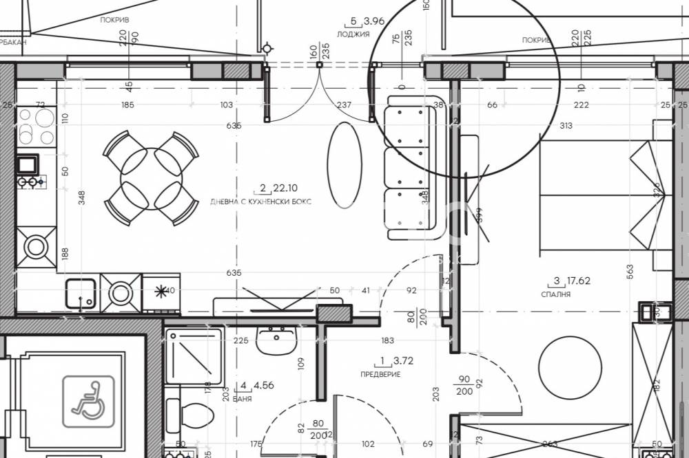 Двустаен апартамент 68кв.м., със следното разпределение: предверие,