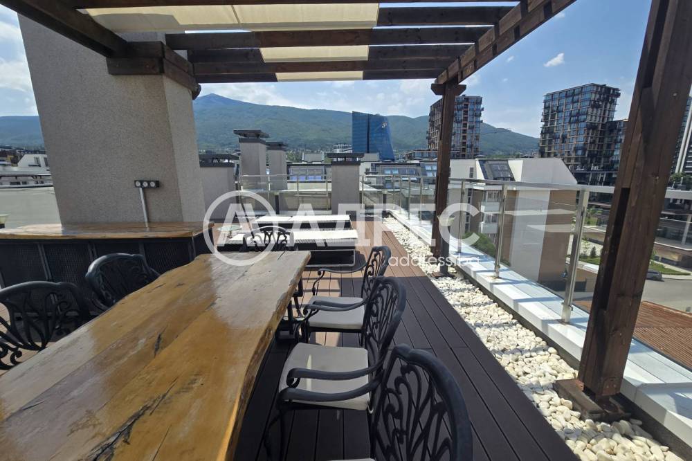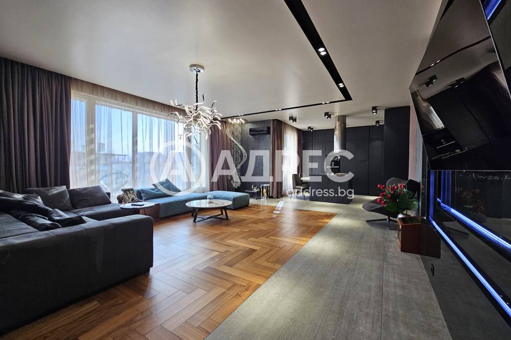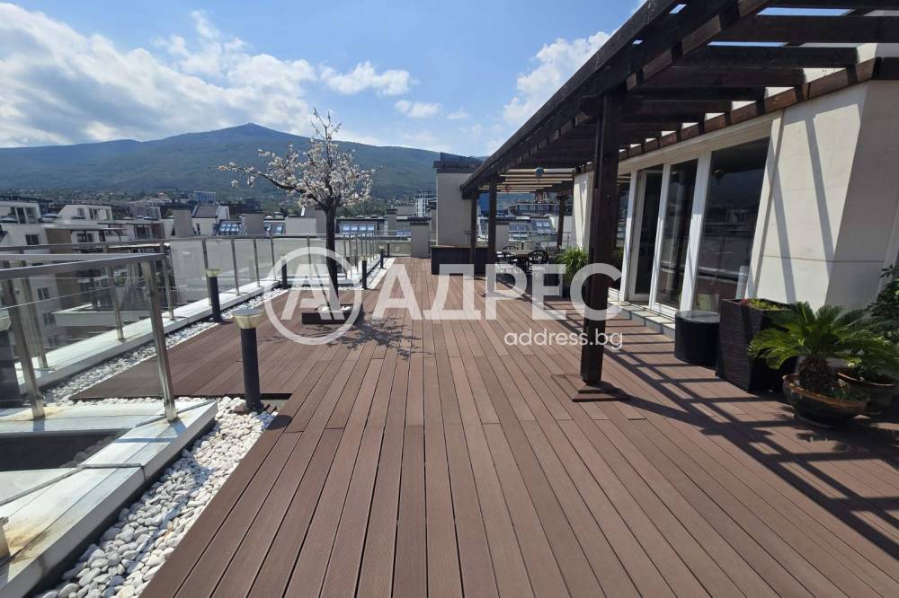 Изключителен пентхаус с четири спални, четири бани и уникална покривна тераса с панорама на 360 градуса, отличаващ се с луксозен и елегантен дизайн. Имотът се намира в премиум затворен комплекс в близост до бул. "България", на тиха локация с изглед към Витоша. Апартаментът е обзаведен и оборудван с най-висококачествени материали, по индивидуален проект на собственика. С опция за две подземни паркоместа.