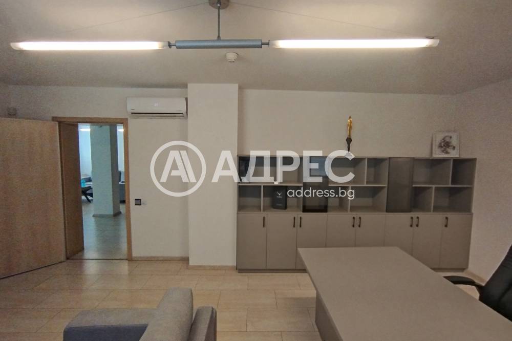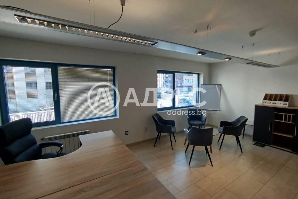 Адрес предлага под наем самостоятелна офис сграда в кв. Манастирски ливади Изток. Офисите са разположени на три етажа – кабинети, отворени работни пространства , конферентна зала, шоурум, приемна, на всеки етаж санитарен възел. Две отделни складови помещения. Седем паркоместа включени в цената!