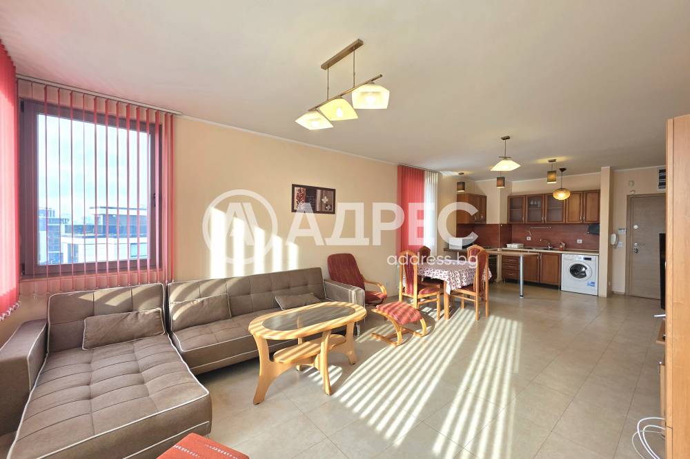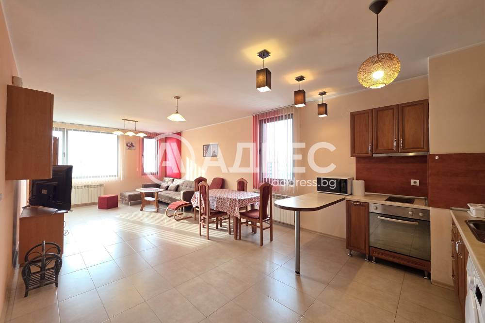 Предлагаме прекрасен, голям, /80 кв.м./ южен двустаен апартамент в сграда Астра в Манастирски ливади. Апартаментът се състои от голяма дневна с кухненски бокс, спалня, баня с тоалетна, коридор и тераса тип лоджия с панорамна гледка към Витоша. Жилището е оборудвано с всички необходими ел.уреди /хладилник, фурна, телевизор/. Настилките в дневната са гранитогрес и естествен дървен паркет в спалнята. Застроена площ 69 кв.м. Възможност за покупка на подземен гараж с площ 23м2.