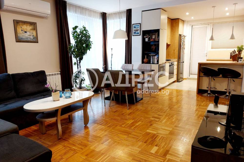 Основен ремонт и обзавеждане на апартамента са направени преди 5 години и е отлично поддръжан. Отоплението е решено отоплителна инасталация на газ, а за горещите дни има монтирани и климатици. Апартаментът се продава с вградените и трайно монтирани мебели и електроуреди.