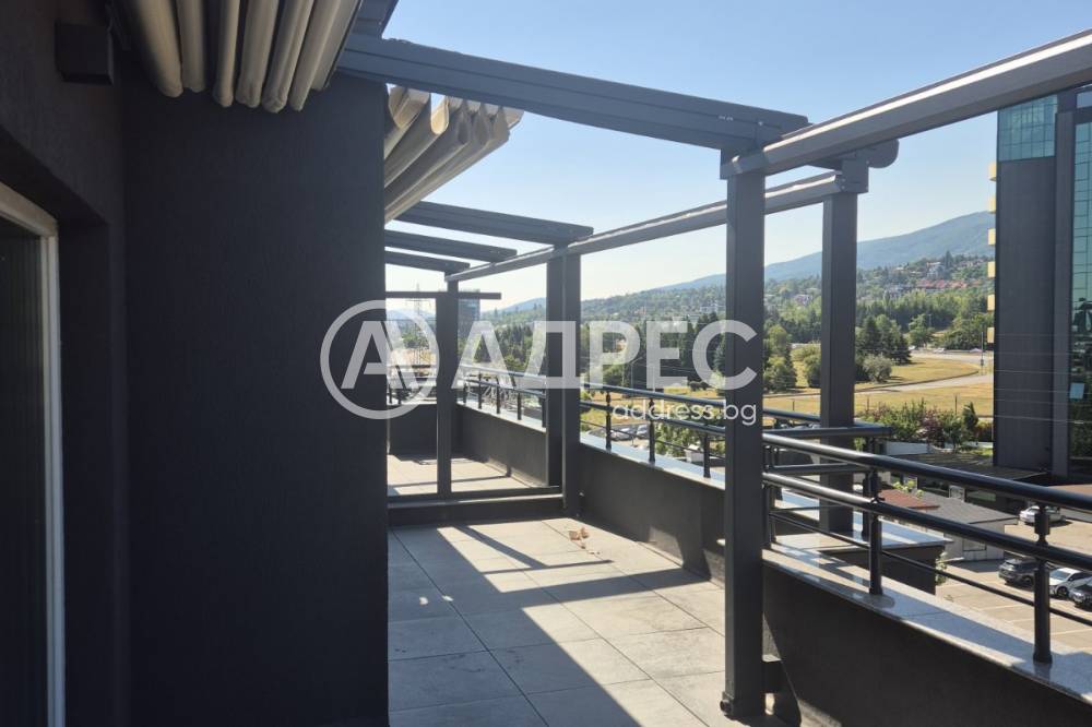 Тристаен, панорамен, с двустранно изложение. Просторна, южна дневна 40 кв.м с гледка Витоша, две спални, едната 28 кв.м със собствена баня и гледка към цяла София, втора южна спалня 15 кв.м. Голяма тереса с автоматични перголи. Възможност за гараж или паркомясто. С ключ.