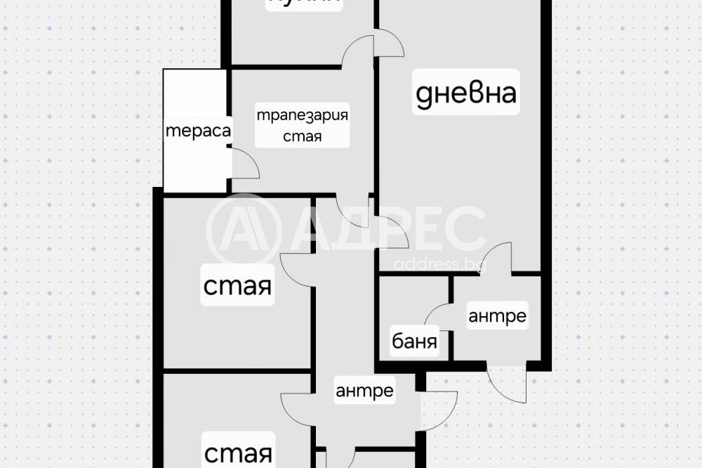 Тристаен апартамент със застроена площ от 81 кв.м. Жилището се състои от хол, кухня с трапезария две спални и два санитарни възела. Извън посочената квадратура имаме 15кв.м усвоена тераса, мазе и таван. Жилището се нуждае от ремонт, но разпределението му дава възможност за различни преустройства.