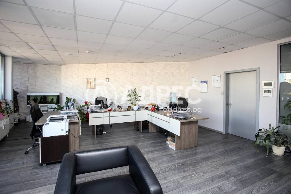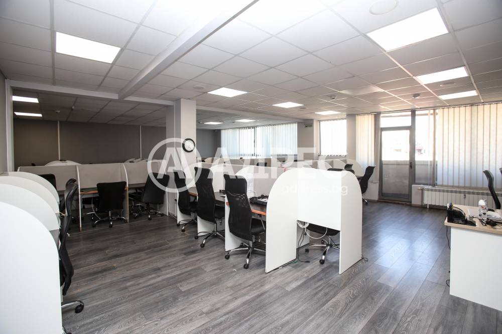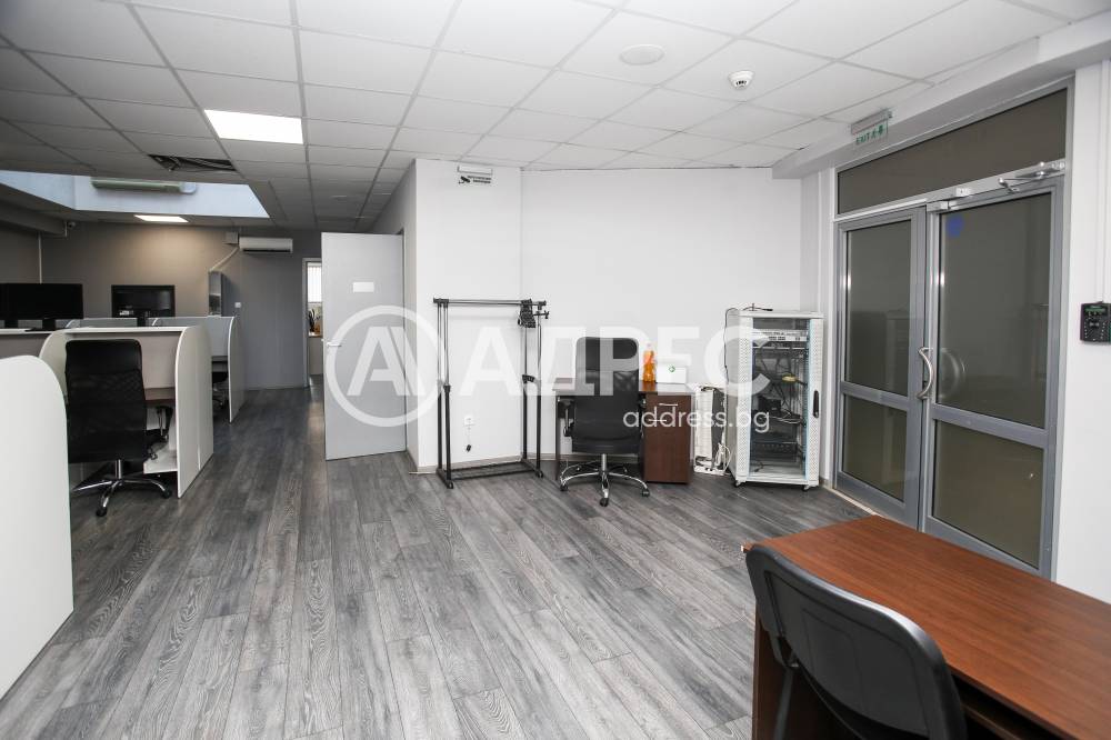 Оборудван Офис, в момента работи като "call center". По документи са два офиса обединени в един. Възможна е продажбата и само на единия. Състои се от: две предверия, с възможност за рецепция, две големи помещения тип "open space", заседателна зала, две кухни, два санитарни възела с по две тоалетни, просторен директорски кабинет със сървърно помещение и склад, две тераси с източно изложение и западно изложение. Могат да бъдат наети паркоместа по 120 лв. Таксата поддръжка е 1 лв./кв.м.