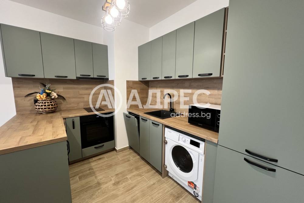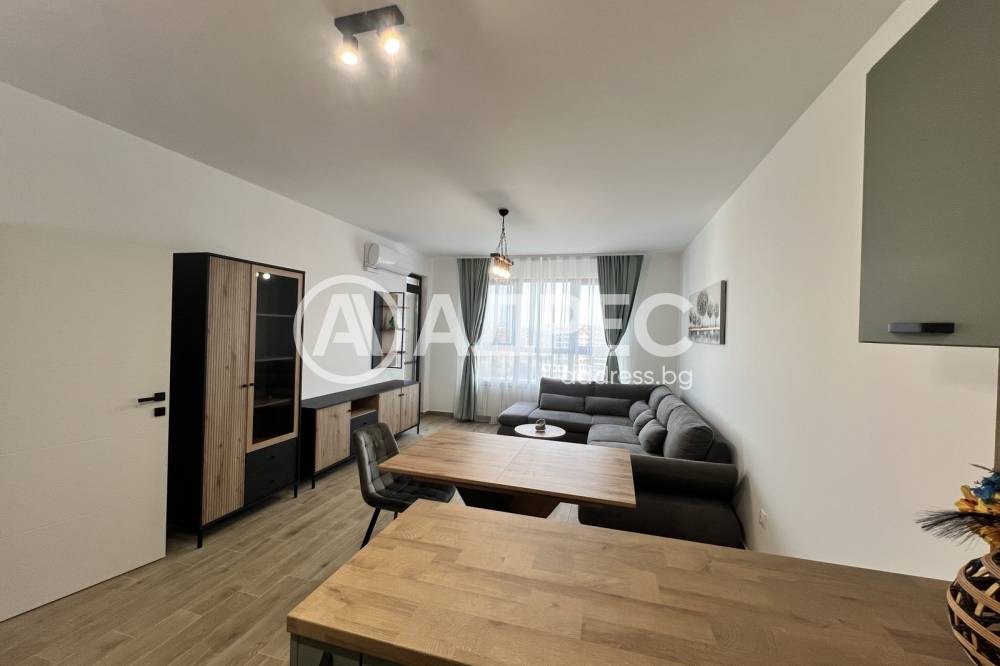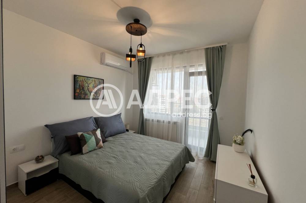 Двустаен апартамент с непреходни стаи. Напълно обзаведен с чисто нови мебели и уреди очаква първите си наематели. Състои се от хол с кухненски бокс, спалня с тераса и баня с тоалетна. Кухнята е напълно оборудвана с вградени, нови уреди: фурна, котлони, съдомиялна, хладилник, микровълнова печка.