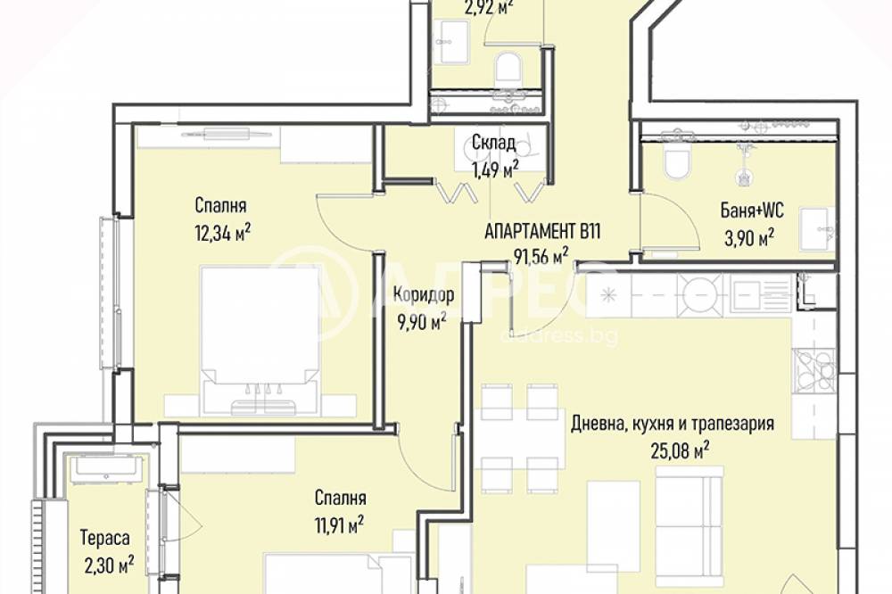 Тип Имот: Тристаен апартамент