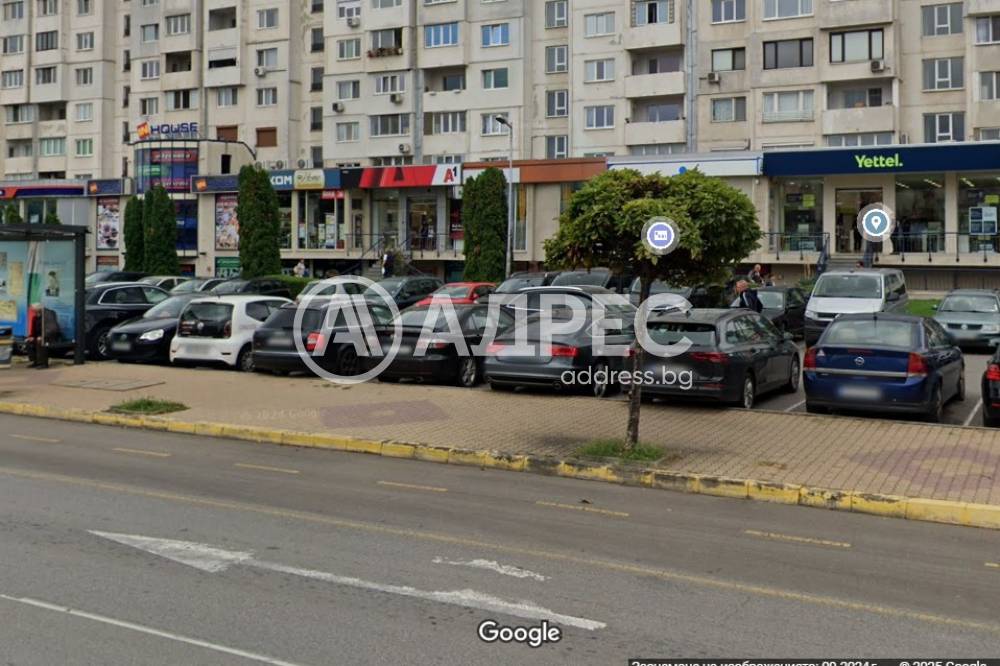Тухлена сграда от 2005г. , на 1 етаж магазини, нагоре са жилища. Пред сградата голям паркинг.
