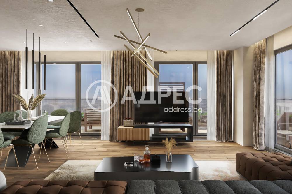 Апартаментът се състои от 3 спални- към две от спалните има прилежаща баня с WC; дневна с трапезария и кухненски бокс -42,00м², 3 бани с WC; входно антре със складово помещение и място за голям гардероб ; тераси. Изложение – Югозапад, Североизток