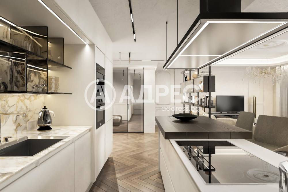Апартаментът се състои от 3 спални- към две от спалните има прилежаща баня с WC; дневна с трапезария и кухненски бокс -42,00м², 3 бани с WC; входно антре със складово помещение и място за голям гардероб ; тераси. Изложение – Югозапад, Североизток