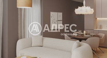 Тристаен апартамент, състоящ се от коридор, дневна 40 кв.м., спалня, отделна кухня с усвоен балкон, баня с WC и килер.
