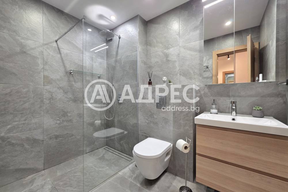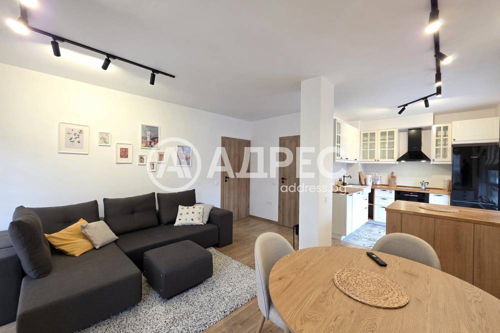 Просторен двустаен апартамент с застроена площ от 71,40 кв.м., с удобно разпределение, състоящ се от антре, баня с тоалетна, склад/мокро помещение, спалня, дневна с кухненски бокс и тераса. Напълно обзаведен и оборудван с висок клас мебели и техника: хладилник, фризер, фурна, абсорбатор, електрически котлони,съдомиялня на BOSCH, микровълнова фурна SAMSUNG, комбинирана пералня със сушилня GORENJE. Отопление и топла вода на газ.
