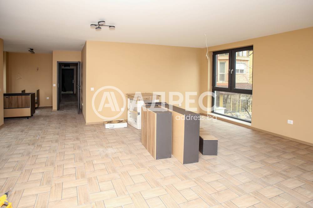 Тристаен апартамент със застоена площ от 115,28м2., с три изложения: изток, юг, запад. Имотът се предлага завършен до ключ, с монтирана кухня и обзавеждане на двете спални.