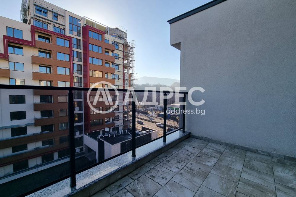 Панорамен двустаен апартамент, състоящ се от: кухненски бокс, трапезарна / дневна част, тераса с гледка към планина Витоша, спалня с тераса и работно място, баня със санитарен възел, мокро помещение и коридор;