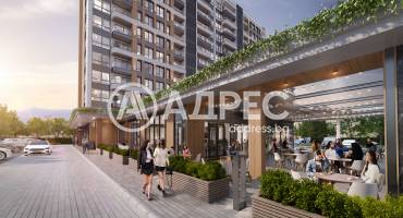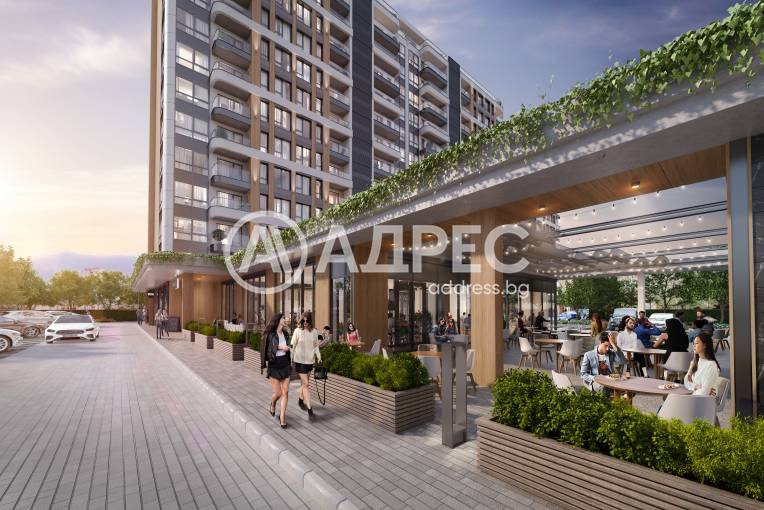 Затворен комплекс с голям вътрешен двор, магазини и ресторант с градина. Вентилируеми окачени фасади с изолация от каменна минерална вата. Алуминиева дограма с троен стъклопакет.