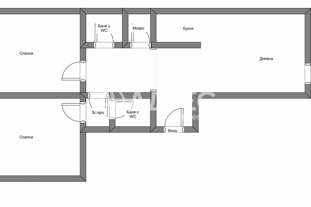 Тристаен апартамент състоящ се от: всекидневна с трапезария и кухненски бокс, родителска спалня с баня със санитарен възел, втора спалня, втора баня със санитарен възел, два балкона, коридор и мокро помещение.;