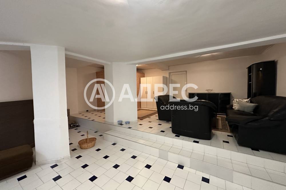 Сутеренно ниво- котелно помещение, голямо помещение с функционалност на дневна, зона за офис, зона за отдих, сауна