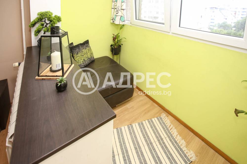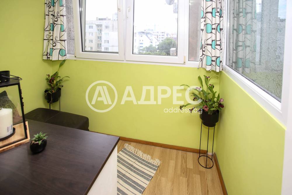 Представяме Ви слънчев и просторен апартамент (двустаен, преустроен на тристаен), състоящ се от две самостоятелни и непреходни спални, два усвоени балкона (лесно връщане на единия балкон), баня с тоалетна, просторен коридор, голям хол с трапезария и кухненски бокс. Отоплението е на ТЕЦ, има и климатик. Изложение: изток/юг/запад.