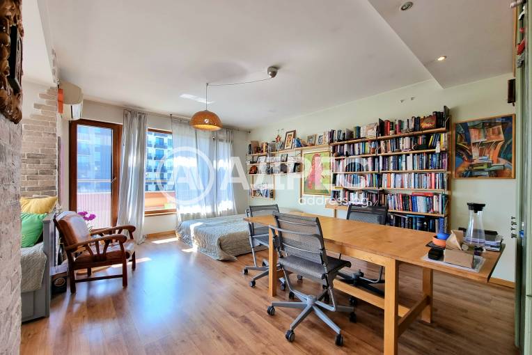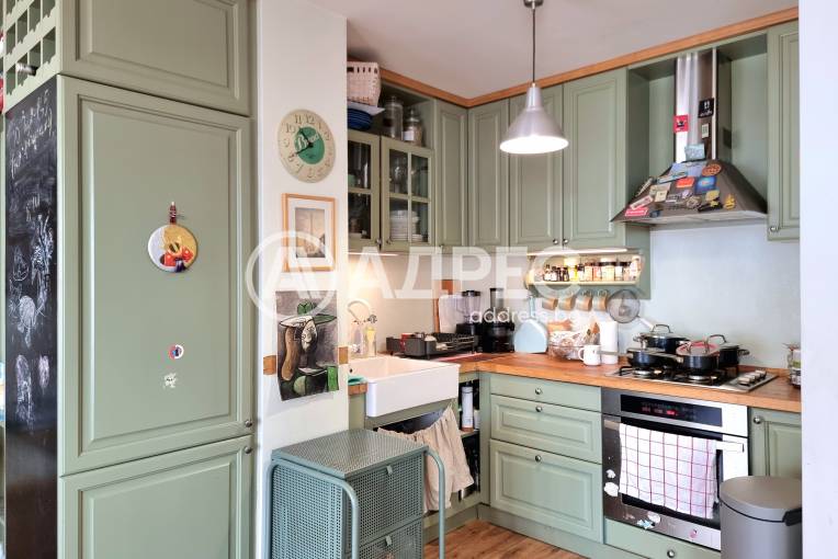 Светъл двустаен апартамент със ЗП от 78,19 кв.м., преустроен от тристаен. Състои се от: входно антре, две спални, дневна-кухня, тоалетна-баня, мокро помещение и тераса. Едната спалня е приобщена към дневната. Югоизточно изложение.