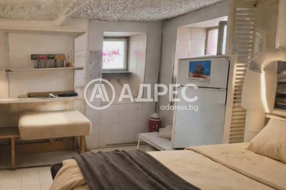 Продава се обособено еднопространствено помещение.Състои се от тоалетна с душ, коридор и помещение с два наземни прозореца. Намира се в приземен/маза/ етаж на стара аристократична сграда. Статута на помещението е магазин за продажба на опаковани храни с идеални части 23 м2, както и 1/16 от правото на строеж върху земята.