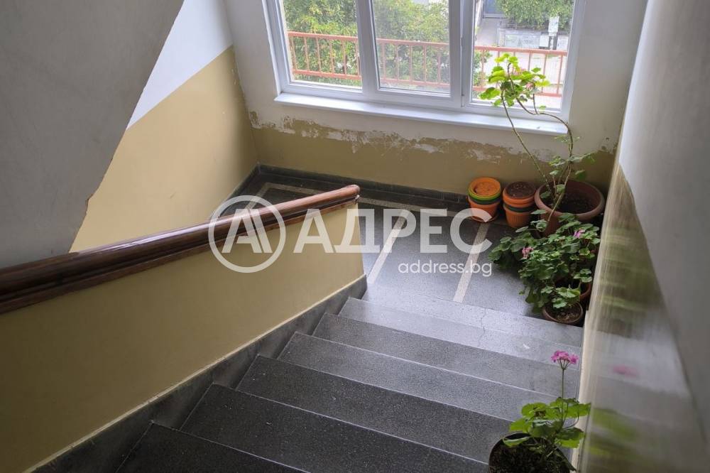 Тухлена сграда от 1963г, с добре поддържани общи части, сменена входна врата с чип, чисто нова дограма на етажните площадки.