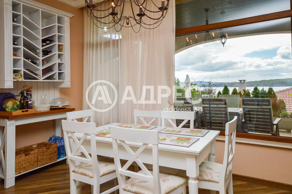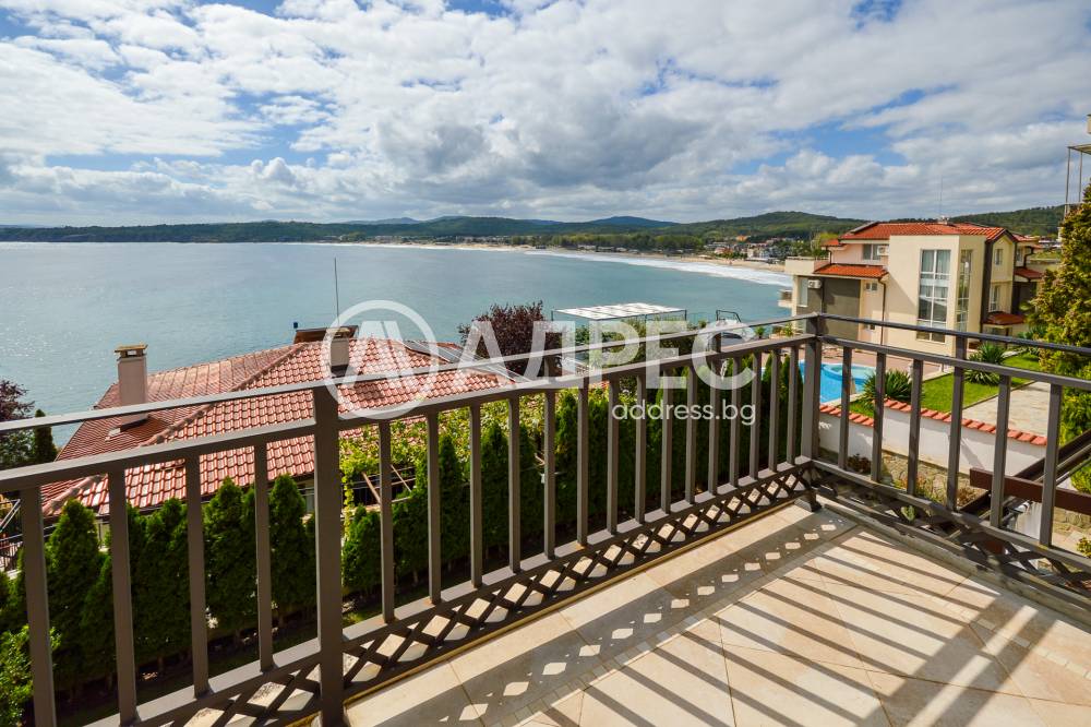 Първи етаж: просторна голяма дневна, трапезария с кухня, баня, мокро помещение, прекрасна веранда с уникална гледка към морето.