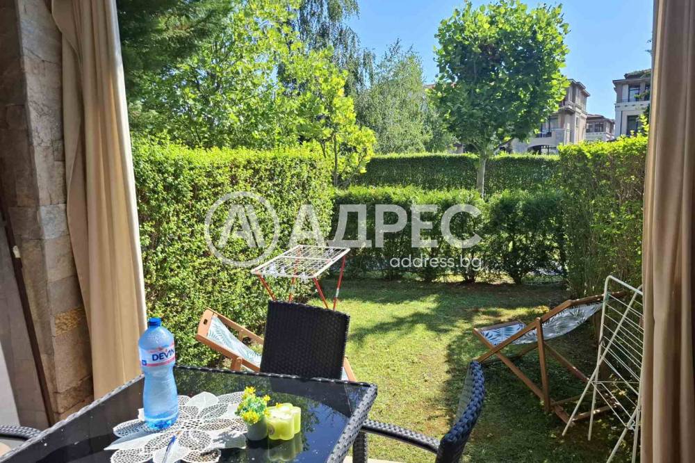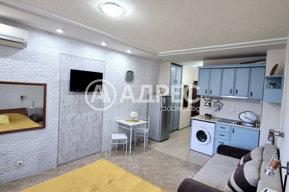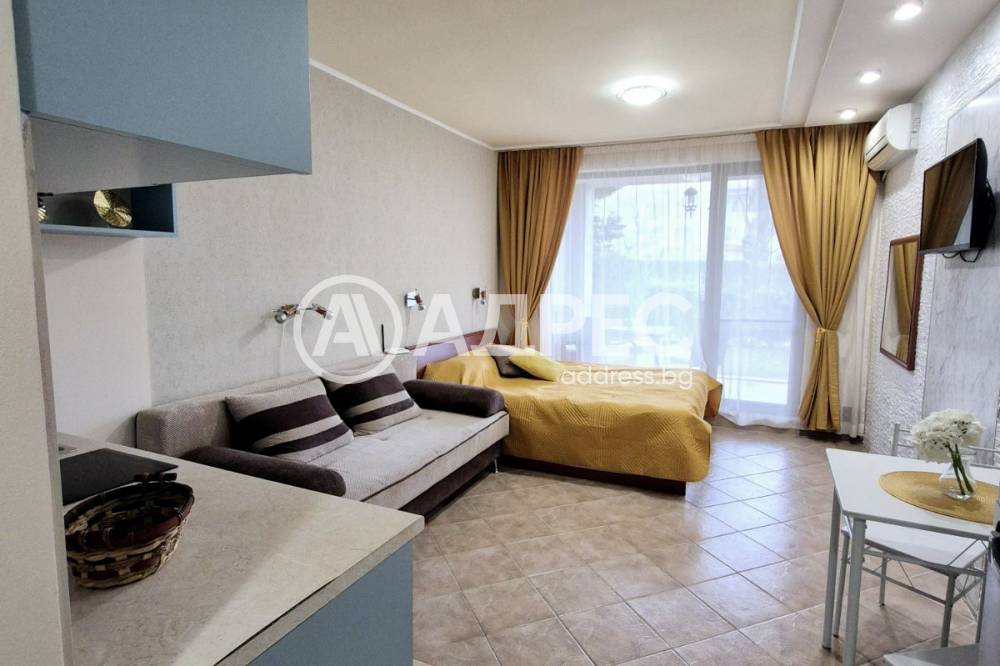 Студио в гр. Созопол, престижен затровен комплекс. 200 метра от плаж Каваци. Площ на имота 48 кв.м, разположено на партер със самостоятелен двор. Студиото е мебелирано и разполага с голямо двойно легло, разтегателен диван, климатик, тераса, напълно оборудвана кухня - керамичен плот, аспиратор, хладилник, телевизор.