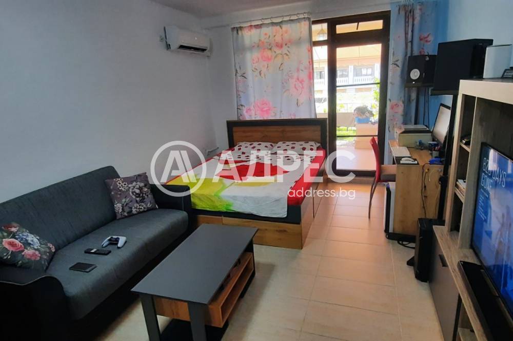 Едностаен апартамент в затворен комплекс гр. Созопол, Кавации. Площ на имота 44 кв. м., етаж 1 - партерно студио със заграден двор с жив плет и гледа към морето. Всички уреди и обзавеждането са чисто нови с между 2 и 5 години гаранция. Годишна такса поддръжка 903 евро.