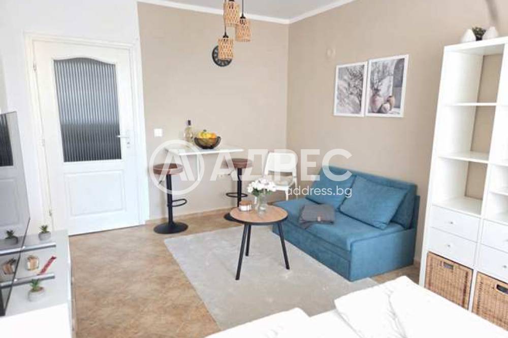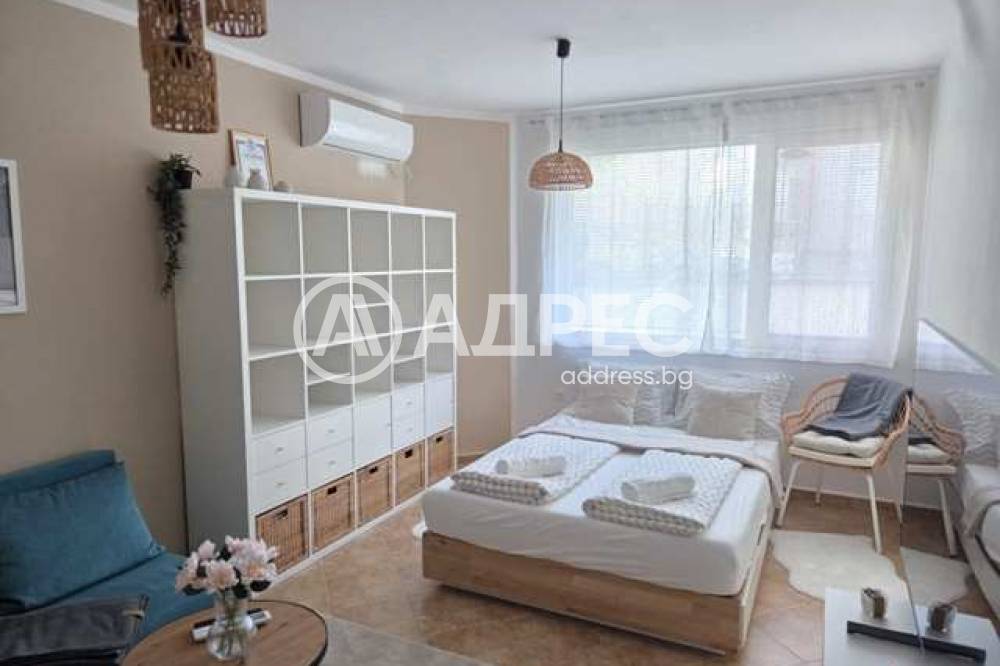 Модерен и стилно обзаведен едностаен апартамент, разположен в непосредствена близост до парк 'Аязмото' - едно от най-зелените и спокойни места в Стара Загора. Апартаментът разполага с комфортна стая с двойно легло, уютен кът за почивка с разтегателен диван и масичка, напълно оборудвана кухня с всички необходими уреди и съдове. Уютна тераса и модерна баня. Интериорът е в топли, неутрални тонове, които суздават усещане за спокойствие и комфорт.