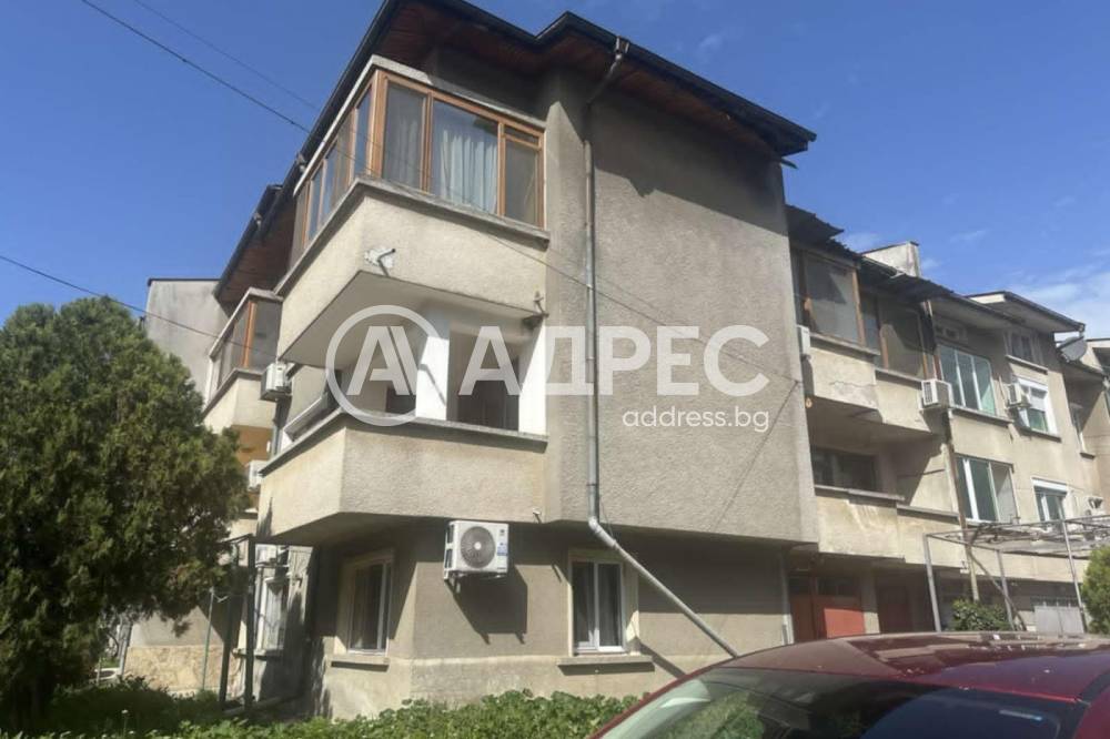 Етаж от къща в Стара Загора. АДРЕС предлага етаж от къща в кв."Кольо Ганчев" в гр.Стара Загора. Етажът е втори, изложението- изток/ юг. Застроената площ на етажа е 140 кв. метра, като има възможност да бъдат обособени два самостоятелни апартамента. В момента единият от апартаментите е в отлично състояние и се състои от спалня, хол, кухня, два балкона, баня с тоалетна. Второто жилище е на тухла и разполага с три стаи, баня с тоалетна и голяма тераса. В посочената цена е включена и продажбата на партерно помещение със санитарен възел, което се отдава под наем, както и гараж.