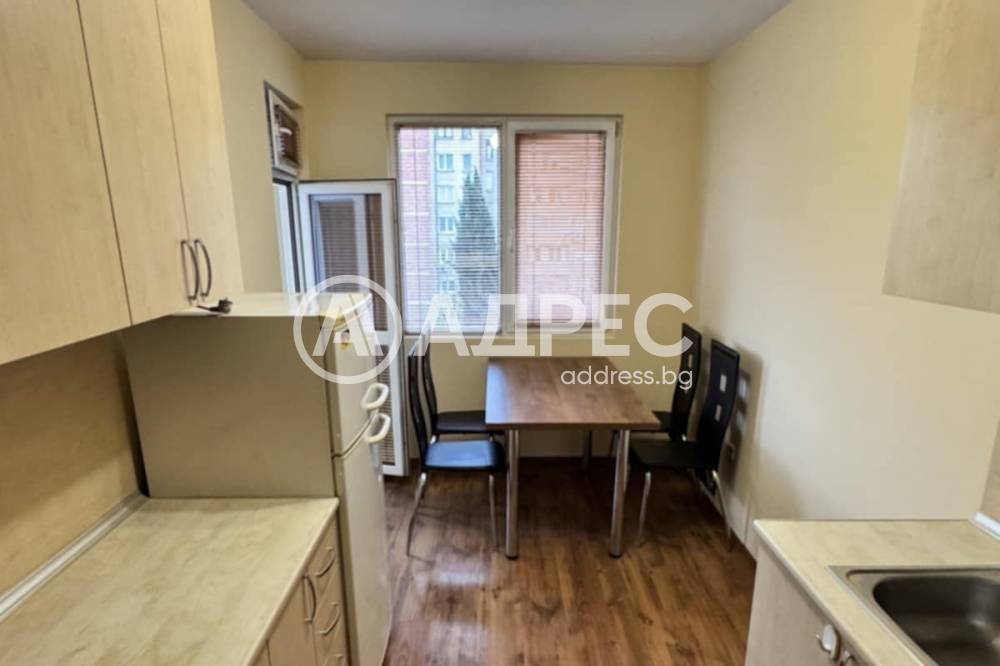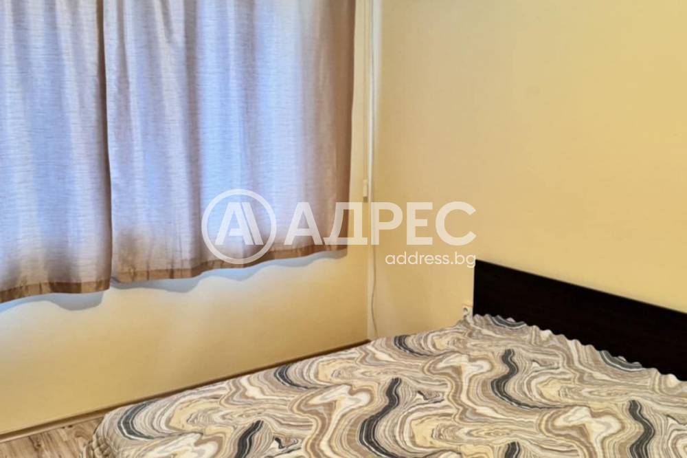 Двустаен апартамент под наем в Стара Загора. АДРЕС предлага под наем апартамент с площ 60 кв. метра, състоящ се от антре, кухня, хол, спалня, тераса и общ сантарен възел. Жилището е разположено на шести етаж в монолитен блок на осем етажа с асансьор и контрол на достъпа. Двустайният апартамент се отдава под наем обзаведен и оборудван с нови мебели и всички необходими ел.уреди.