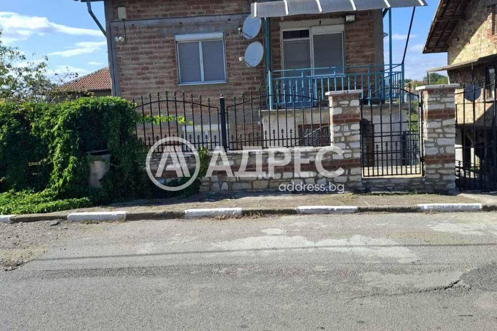 АДРЕС предлага за продажба, Двуетажна тухлена къща, РЗП 125 кв.м и дворно място с площ от 600 кв.м. На плоча между етажите. На първи етаж има дневна, кухня, килер, баня и тоалетна. Вторият етаж се състои от хол, две спални и коридор. Отопление на пелетна камина с водна риза и два климатика. Дограма ПВЦ.