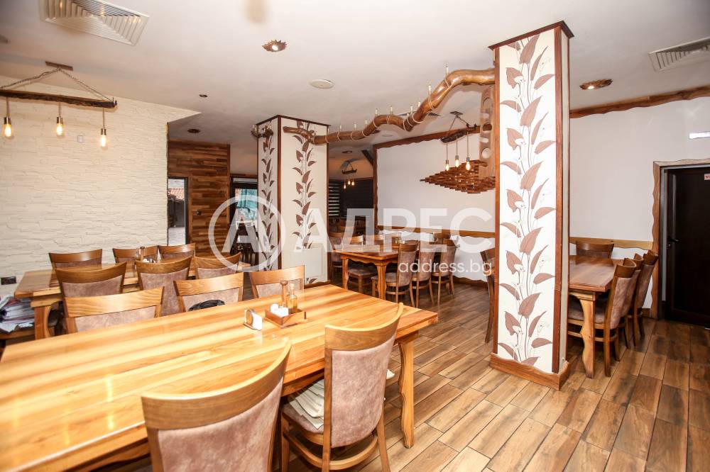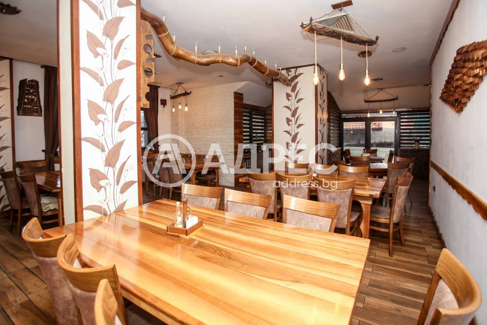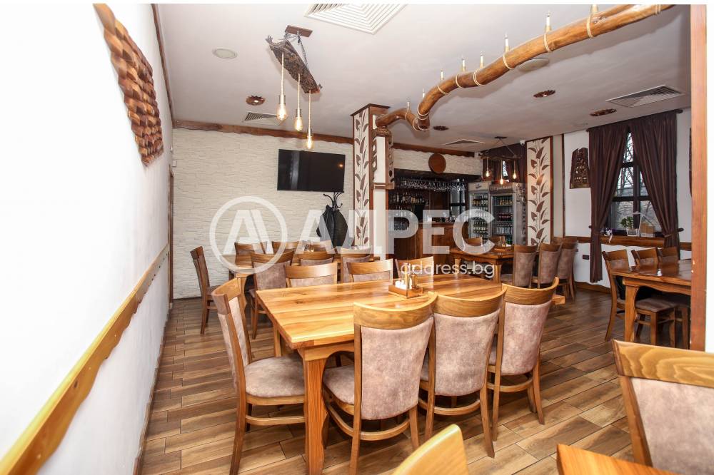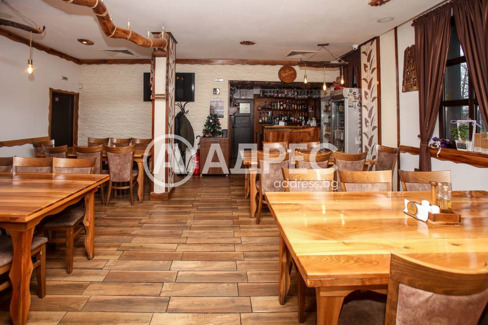 Ресторантската част разполага с вътрешна зала и просторна градина, подходяща за сезонно и целогодишно обслужване, частни събития, тържества и тематични вечери. Обектът е оборудван с професионална кухня, складови помещения, санитарни възли и обслужващи пространства, отговарящи на всички изисквания за заведение за обществено хранене. Има идеен проект и разрешителни за разширяване.