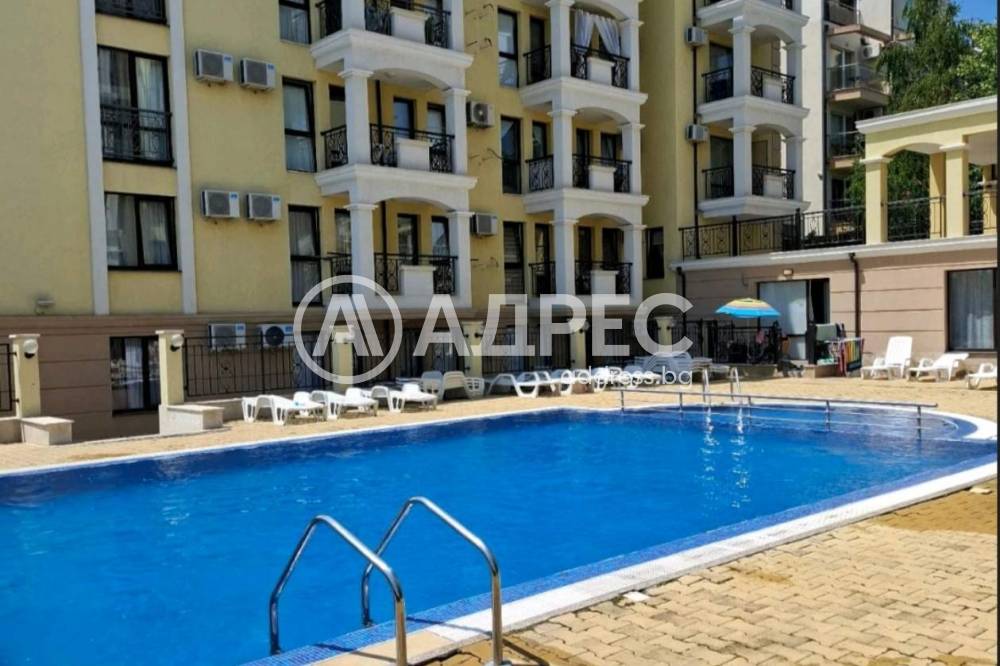 Отличен двустаен апартамент в затворен комплекс във Свети Влас. Морски бряг е комплекса. Състои се от дневна с кухненски бокс спалня тераса и санитарно помещение. Напълно обзаведен и обурудван. Годишна такса подръжка е 480 евро.