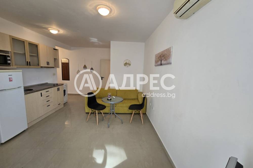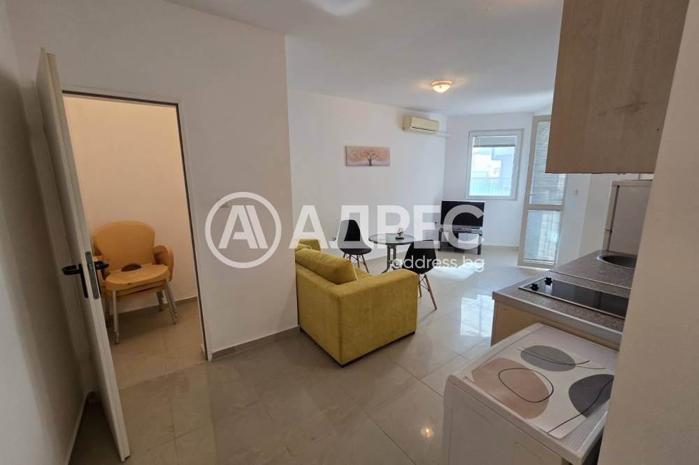 Двустаен апартамент в град Свети Влас. Жилищна сграда с Акт 16. БЕЗ ТАКСА ПОДРЪЖКА. Площ на имота 65кв.м., етаж 1 - партер. Състои се от коридор, дневна с кухненски кът и трапезария, от която се излиза на територията на сградата, спалня и баня с тоалетна.