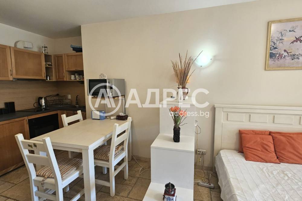 Едностаен апартамент, удобен и компактен, напълно обзаведен и готов за използване в затворен комплекс с чудесна инфраструктура, отличен за почивка или постоянно обитаване.