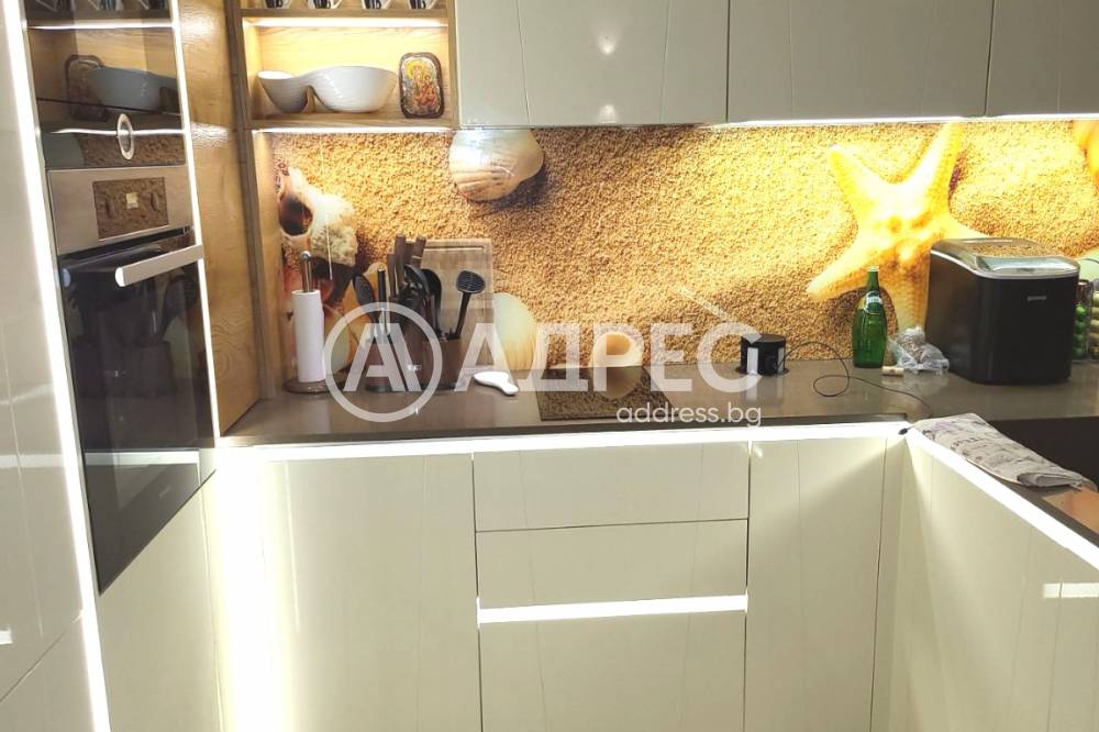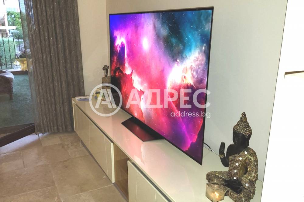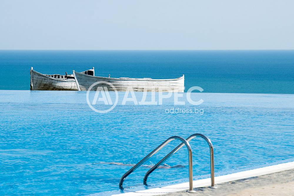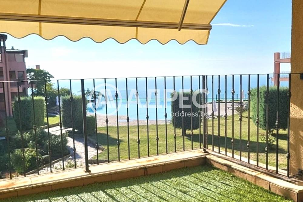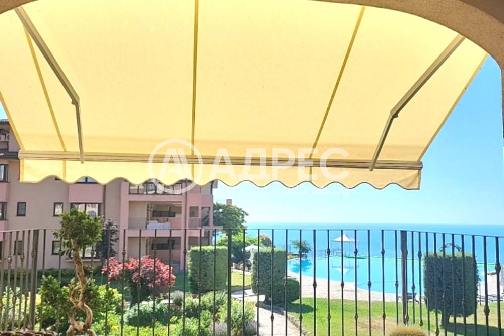 Тристаен апартамент 130 кв.м в комплекс "Калиакрия Гардънс". Състои се от дневна с кухня, две спални, две бани - тоалетна, склад, антре и тераса с безкрайна морска панорама, сливаща се с инфинити басейн. Оборудване на MIELE, DAIKIN и др. от най-висок клас. Паркиране на две коли за апартамента. Перфектно за живеене, отдих, забавление, както и инвестиционно използване на имота.