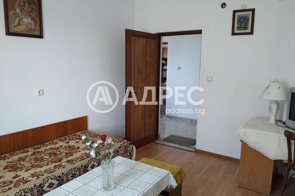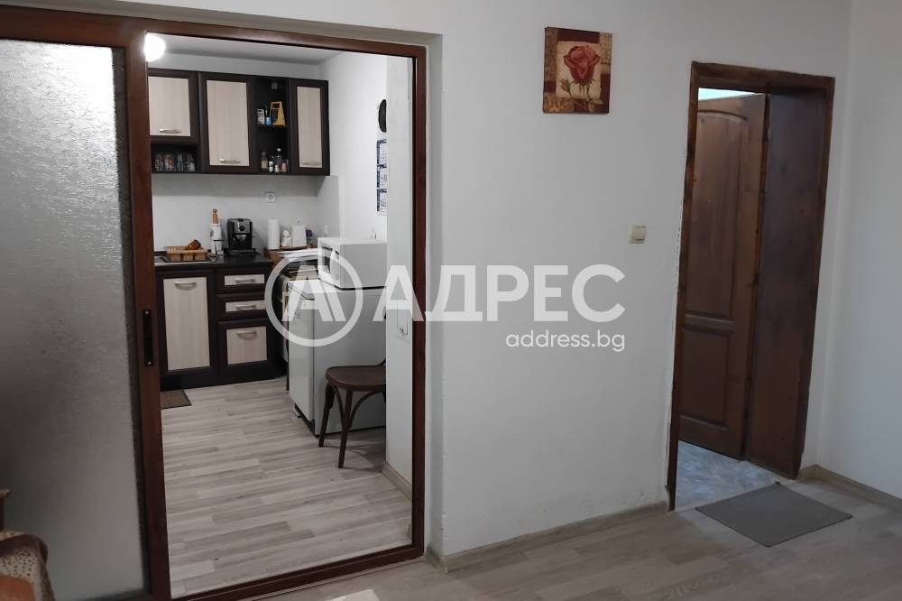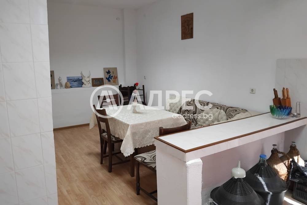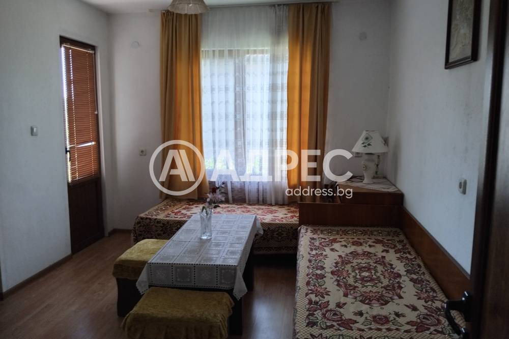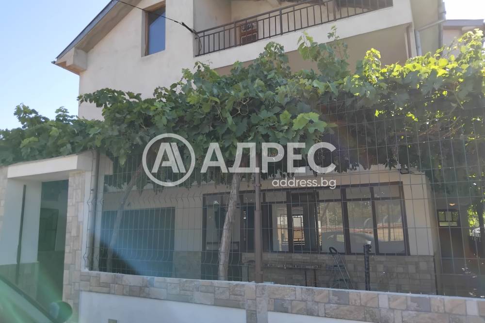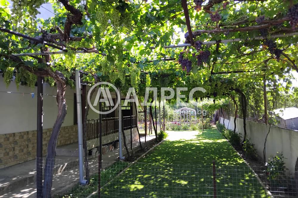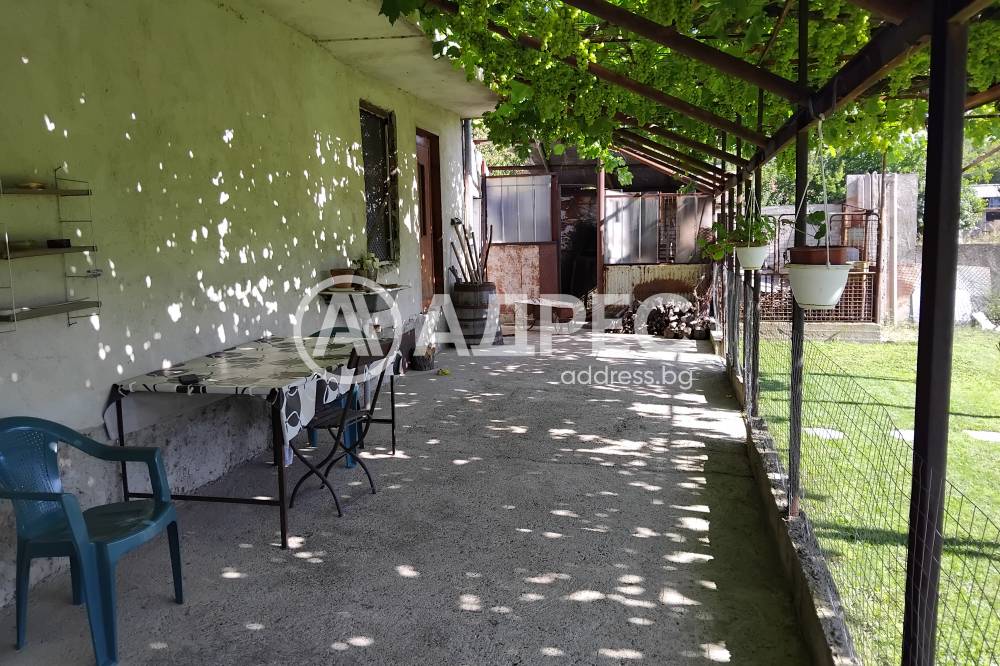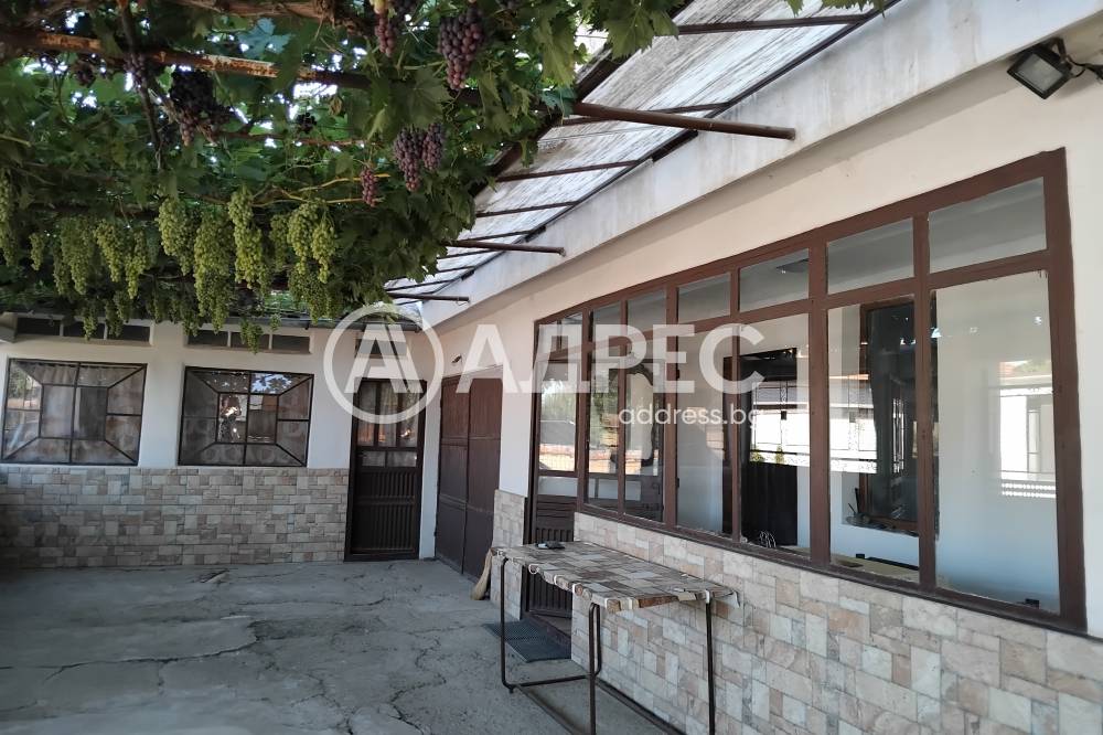 Масивна тухлена къща на три етажа. Застроена площ 120кв.м Първият етаж разполага с кухня, трапезария, хол, спалня, санитарен възел и две тераси! Вътрешен подход с топла връзка и към масивен гараж от 20 кв.м. Вторият етаж се състои от кухня с трапезария, хол, две спални, санитарен възел и три тераси. Третият мансарден етаж дава възможност за разпределение в дневна-трапезария, две спални и четири тераси. Къщата е в отлично състояние.Продава се с наличното обзавеждане и техника. Към имота има търговски обект със статут ”кафе-аперитив” с площ от 44 кв.м. Двор 1000кв.м. изключително добре поддържан.