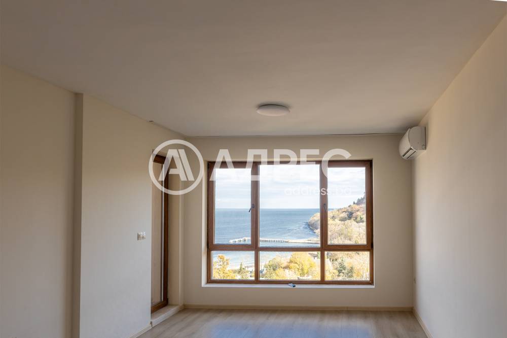 Прекрасен панорамен апартамент в затворен комплекс на брега на морето. Апартаментът е с чиста площ от 58 кв.м и се състои от просторна дневна, спалня, с излаз на тераса, санитарен възел. Апартаментът е завършен до ключ с подови настилки, интериорни врати, с обзаведена и оборудвана баня с тоалетна, вградена кухня с електроуреди.