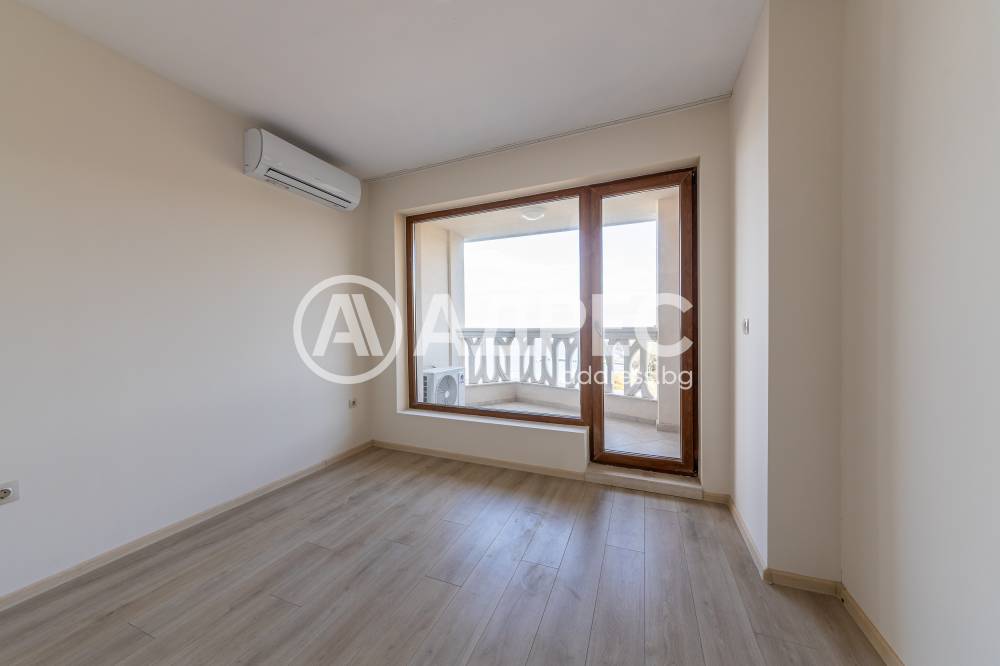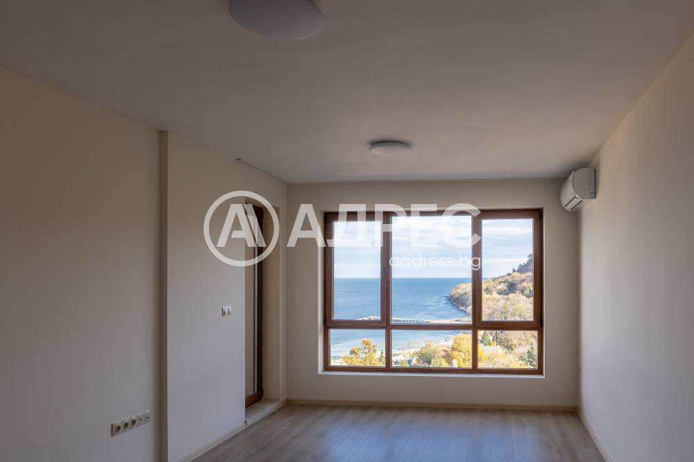 Прекрасен,панорамен, завършен до ключ апартамент, намиращ се в затворен комплекс, разположен на брега на морето. Апартаментът е с чиста площ от 58кв.м и се състои от просторна дневна, спалня, с излаз на тераса,санитарен възел. Апартаментът е завършен до ключ с подови настилки, интериорни врати, с обзаведена и оборудвана баня с тоалетна, вградена кухня с електро уреди.