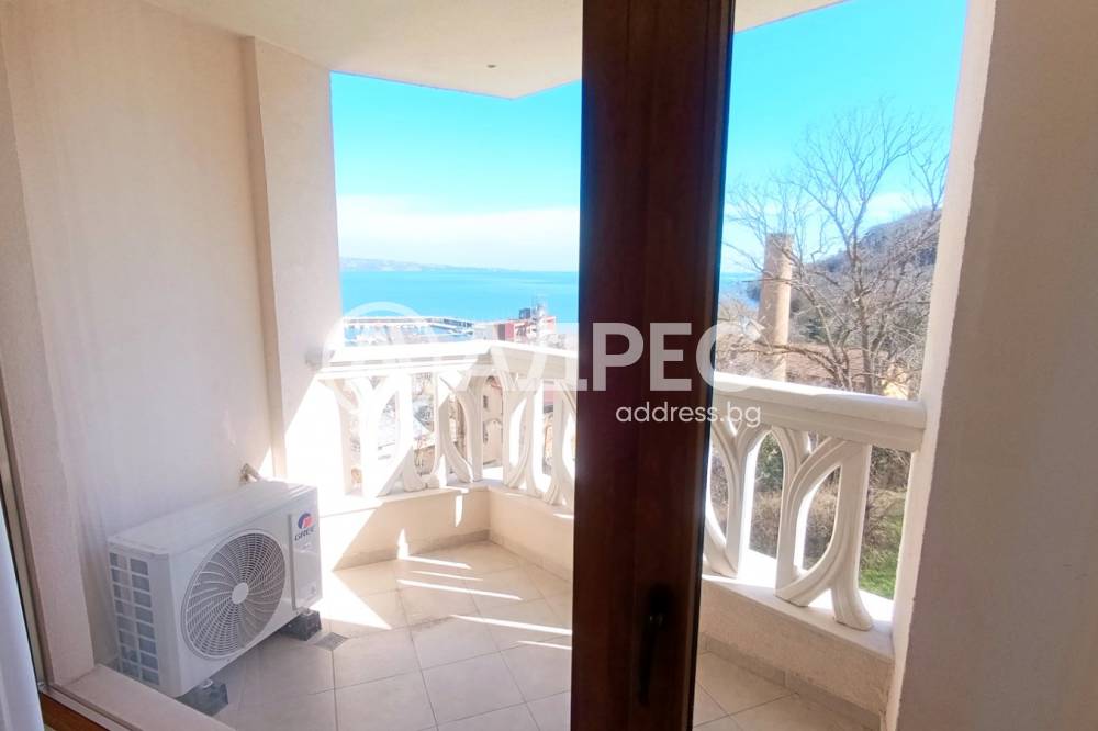 Двустаен апартамент с МОРСКА ПАНОРАМА, разположен в нова сграда на среден етаж на брега на морето.Състои се от дневен тракт с вградена кухня, спалня, баня и тоалет, панорамна тераса.
