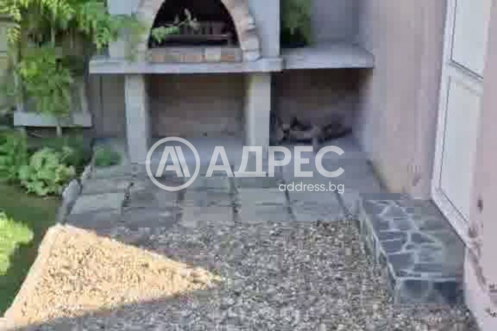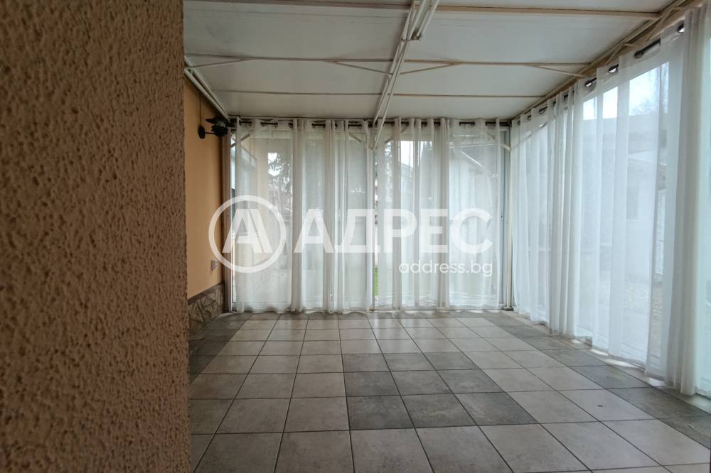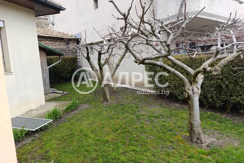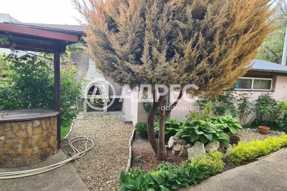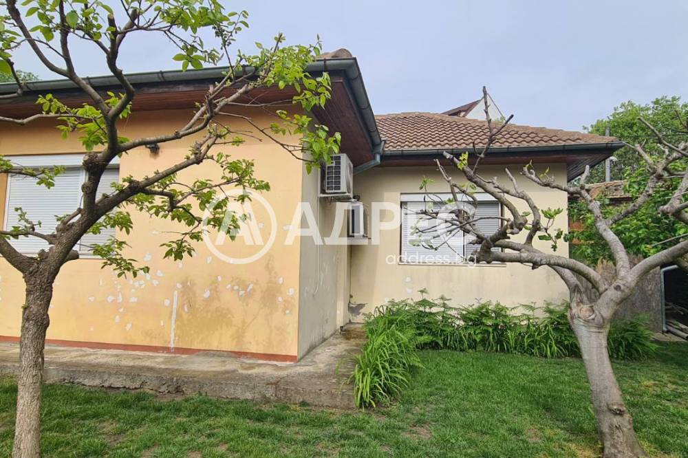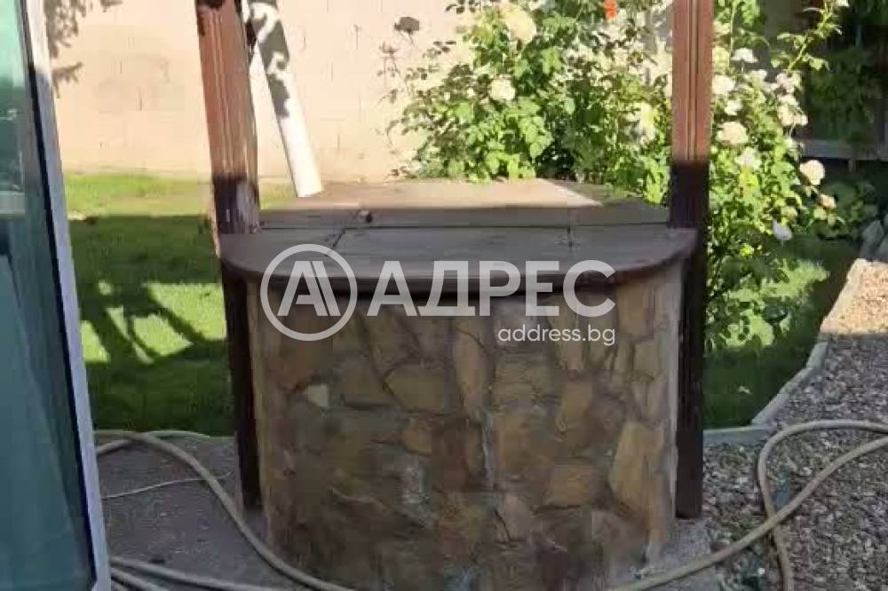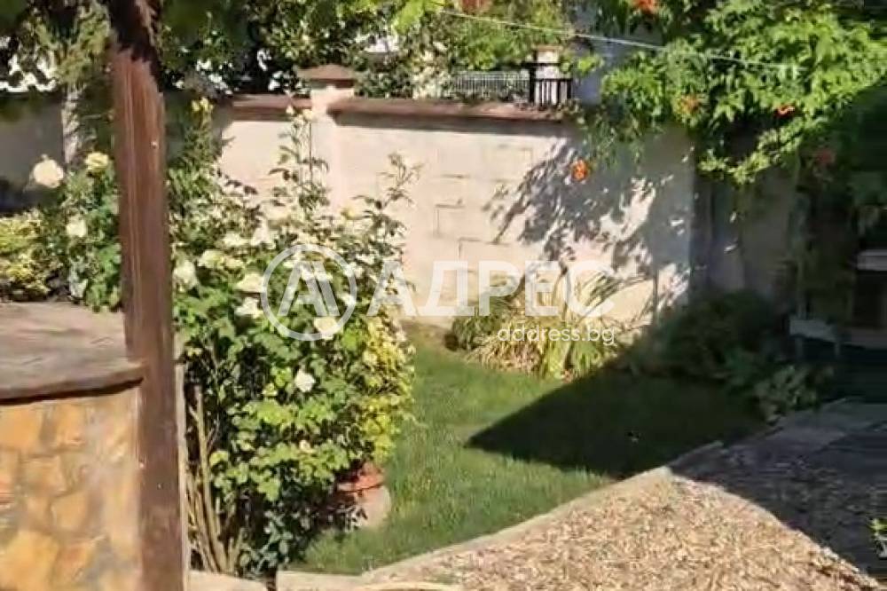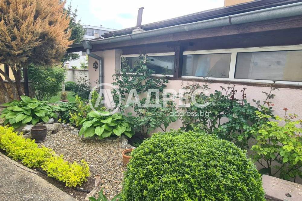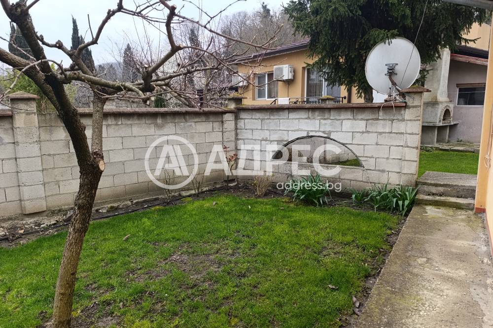 Самостоятелна къща 120м2 с гараж 27м2, пристройка/работилница и прекрасно аранжиран двор. Парцел 448м2. Зимна градина, покрита и остъклена трапезария. Самата къща се състои от кухня с трапезария, холова част, три спални, баня с тоалет, втори тоалет, килер, перално и други помощни помещения. Маза с котел на дърва. В двора има кладенец, зидано барнекю, самостоятелна работилница, дворът се поддържа от градинар. Продава се с всичко трайно прикрепено, без мебелите. Много добро предложение. Заслужава си да се види.