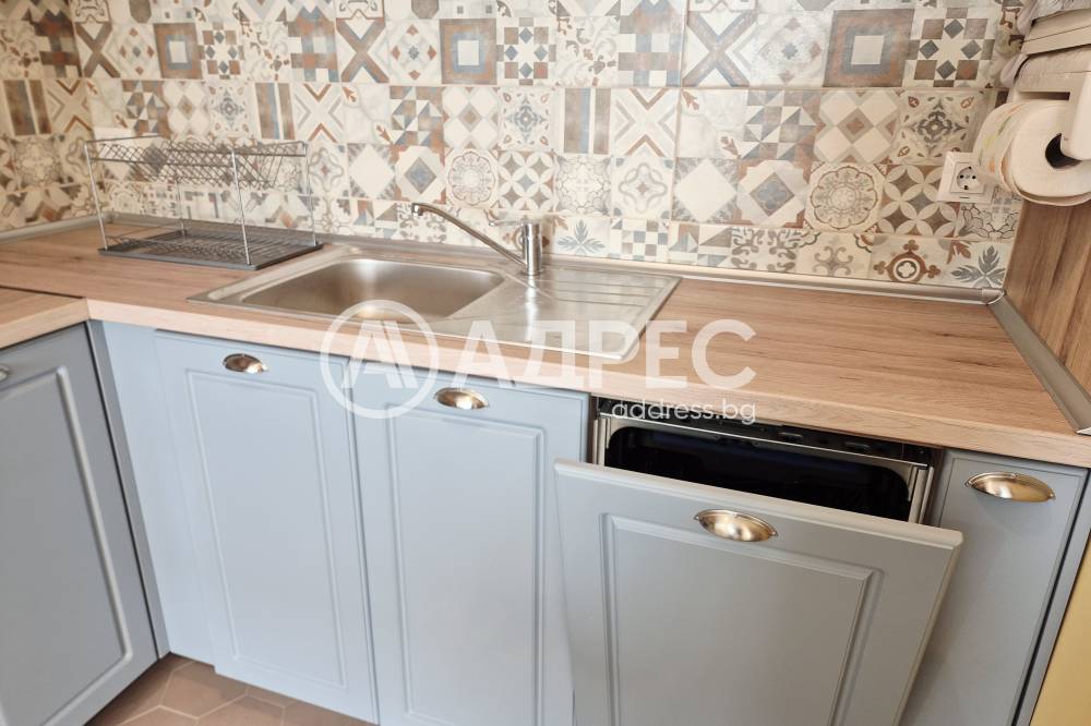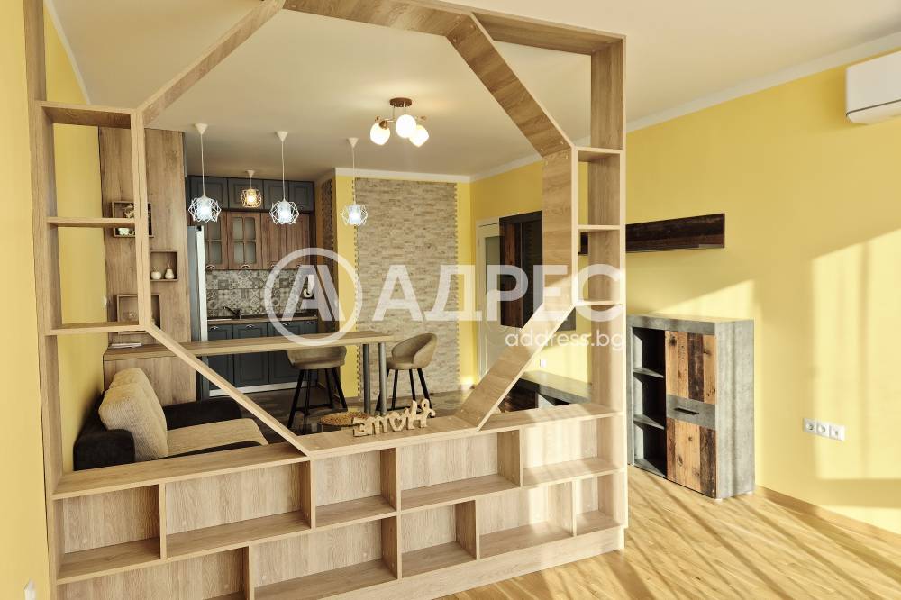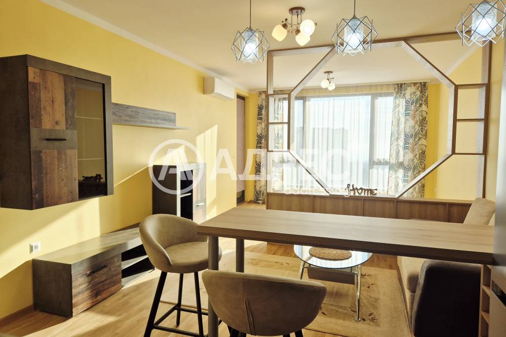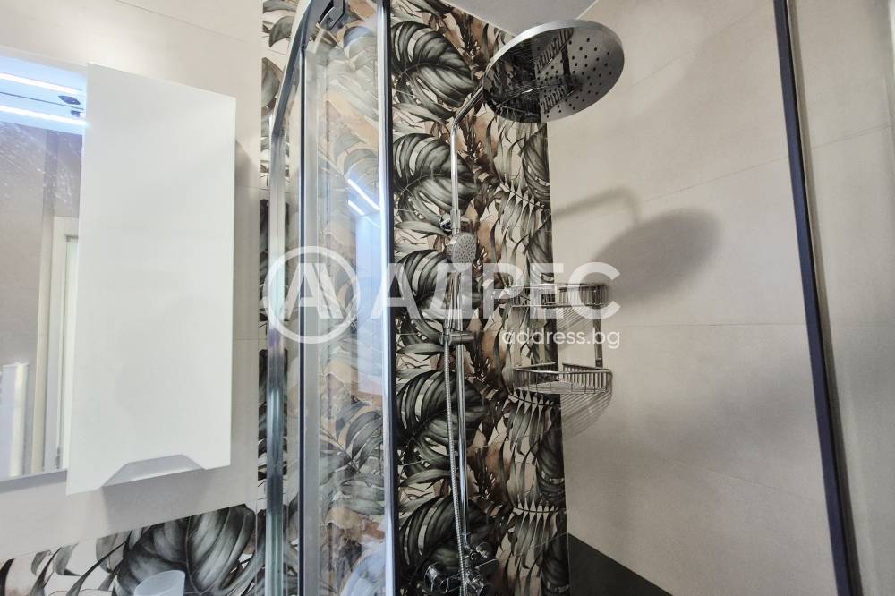 Новообзаведен, двустаен апартамент с морска панорама. Жилището се състои от слънчева дневна разпределна на кухненска част - бяла техника, вкл. съдомиялна, холова част, празно пространсто, което бъдещият наемател може да оформи като кабинет. Спалня - обзаведена. Баня с тоалет. Килер. Тераса с гледка към морето. Два климатика. Външно паркомясто.